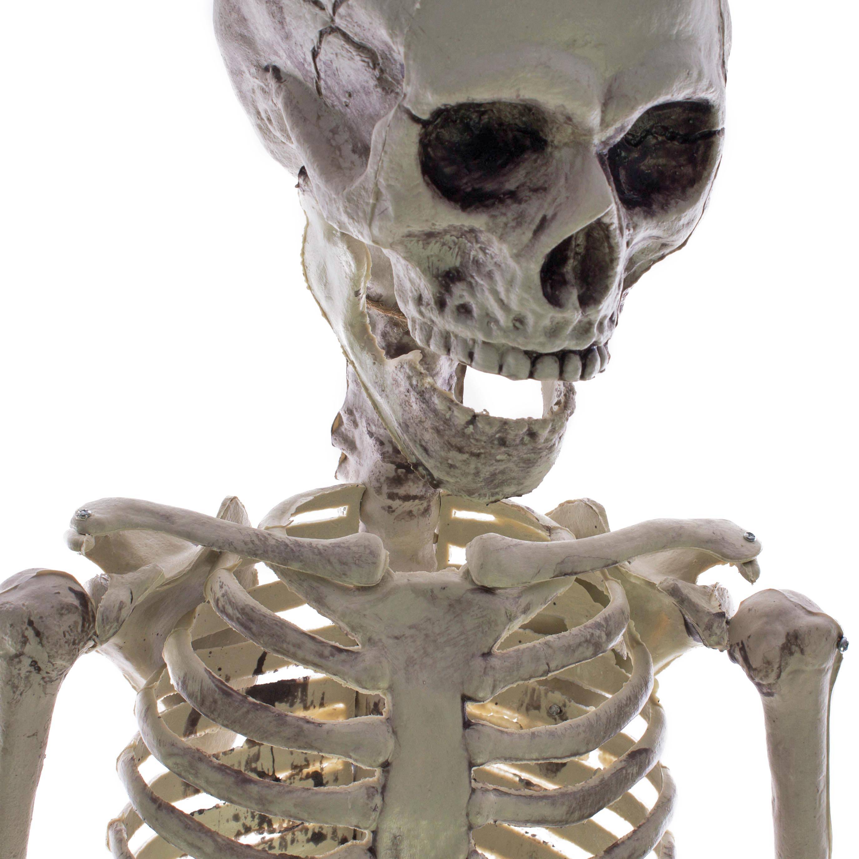 Schaurig schönes Modell Skelett FLINT mit einer realistischen Körperlänge von 163 cm. Die Halloween Deko Anatomie ist sehr detailgetreu gearbeitet und besteht aus Kunststoff.