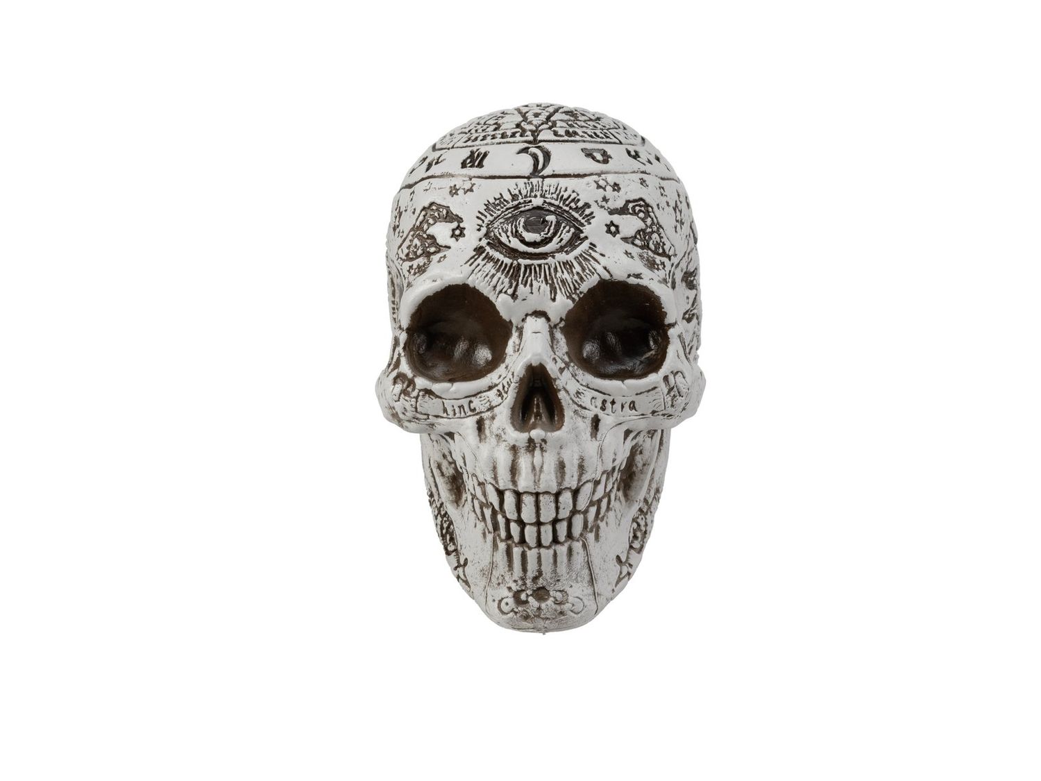 Halloween Totenschädel FARALDA mit mystischen Zeichen und Symbolen, weiß-schwarz, 12x10x18cm