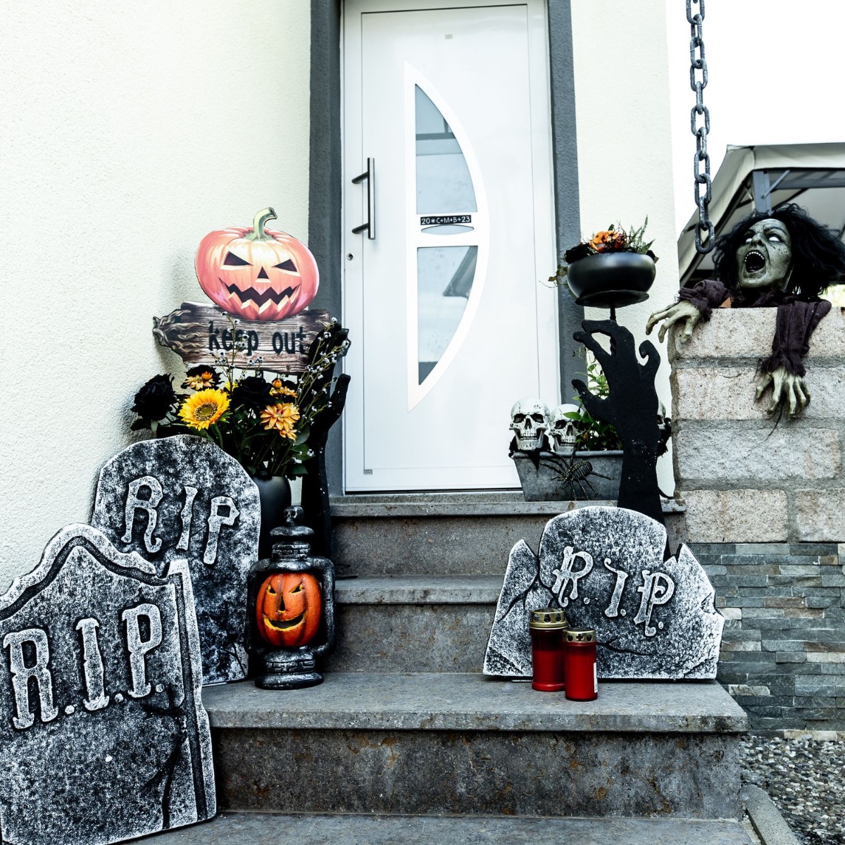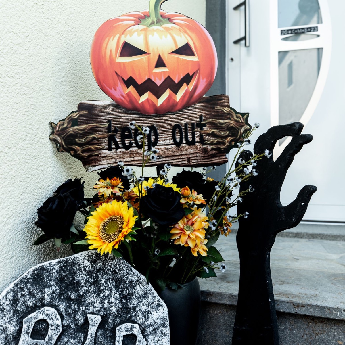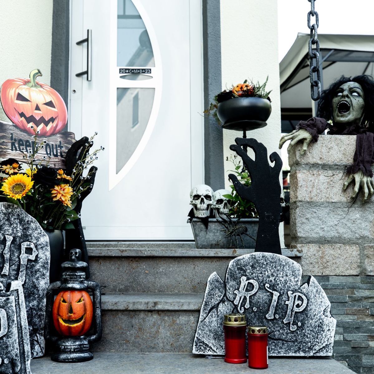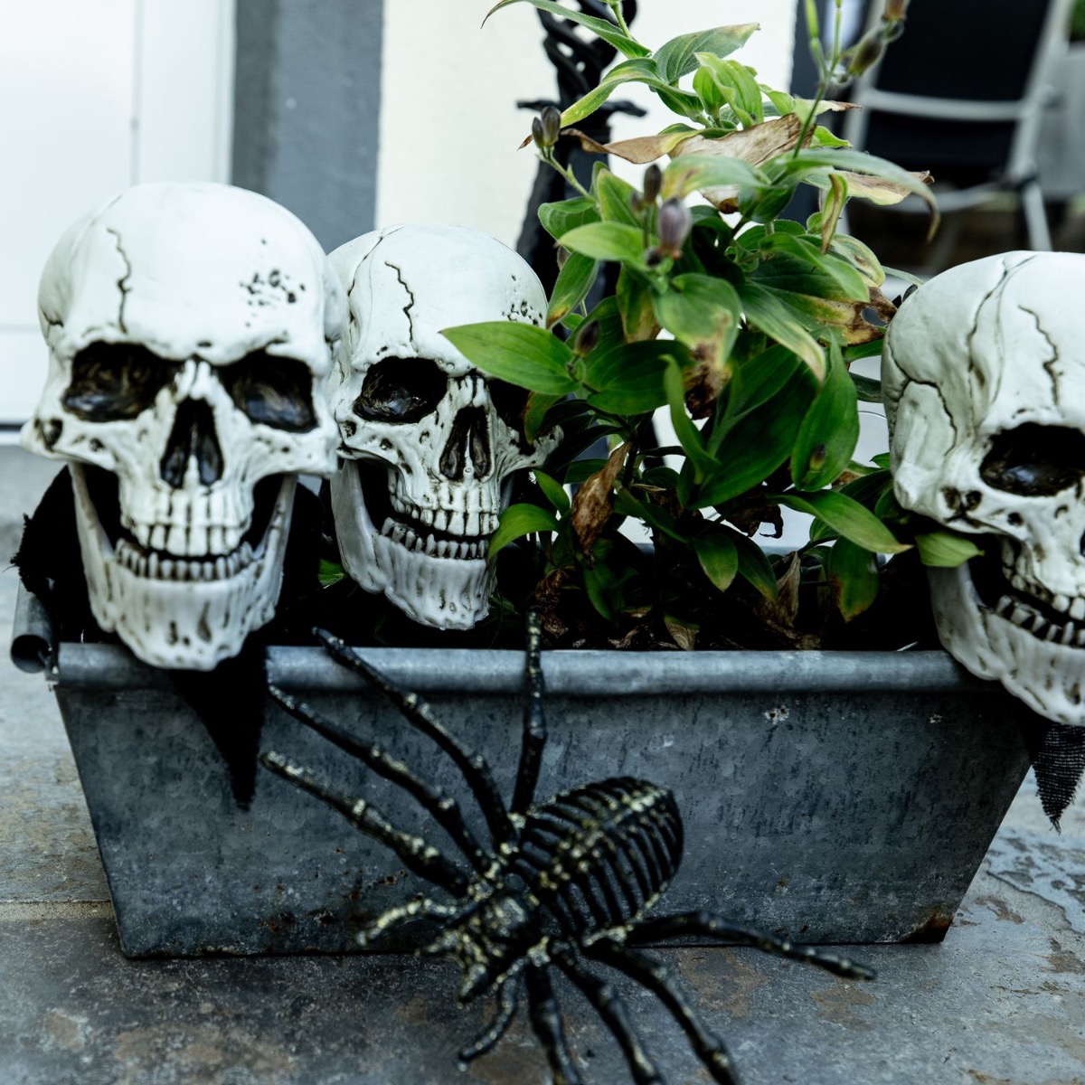 Trick or Treat! Was gibt es schöneres als kreischende Kinder, die Süßigkeiten verlangen, vor der Haustüre. Na, da wollen wir sie mal ordentlich abschrecken. Unsere Grabsteine und Hände aus Styropor haben schon einen echt hohen Gruselfaktor, aber auch die beleuchteten Schädel, die man in Pflanztöpfe stecken kann, sind wirklich schaurig. Ein Strauß aus schwarzen Rosen und Sonnenblumen darf bei artplants-Looks niemals fehlen. Schließlich verschönern Blumen sogar die schaurigsten Orte. Shop the Look!