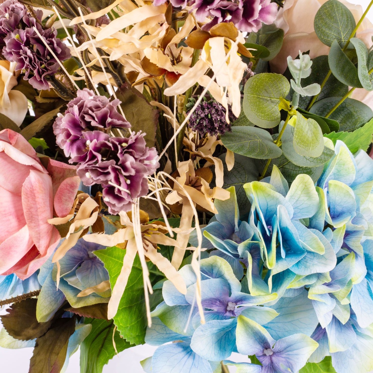 Eine Vielzahl an zarten Blüten umschmeicheln die üppigen Hortensienköpfe des herbstlichen Straußes TRIANA. Das Farbzusammenspiel ist absolut harmonisch und die Freude auf den Herbst wird geweckt. Die Wärme, die der Blumenstrauß mit seinen Farben repräsentiert bringt Gemütlichkeit in ihr zu Hause. Ihr gedeckter Tisch wird mit dem Herbststrauß komplementiert, durch die naturgetreue Darstellung der Blüten, wird man die Blumen kaum von echten unterscheiden können.