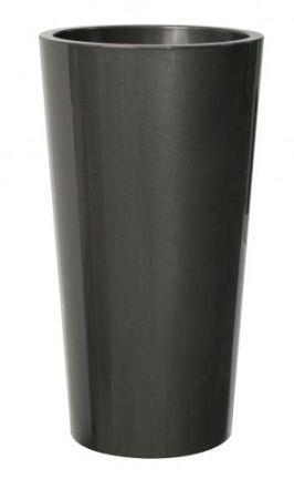 Hohe runde Pflanzvase THERESITA aus Kunststoff, mit Einsatz, Bewässerungsset, anthrazit, 75cm, Ø40cm