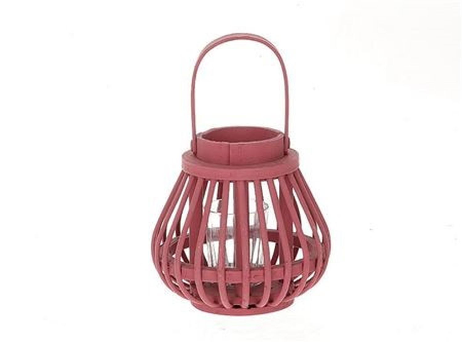 Holz Laterne CHARITHRA mit Henkel, Glaseinsatz, beere, 15cm, Ø15,5cm