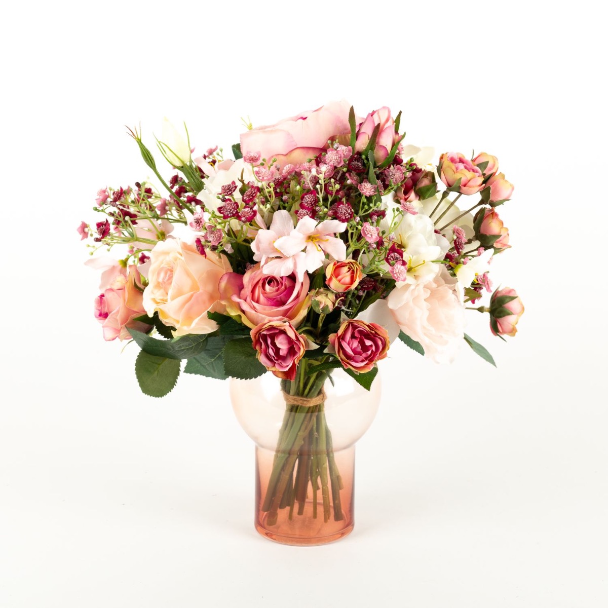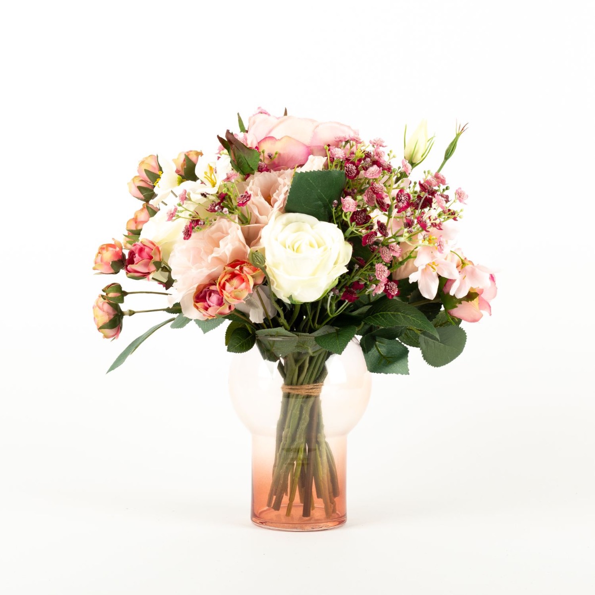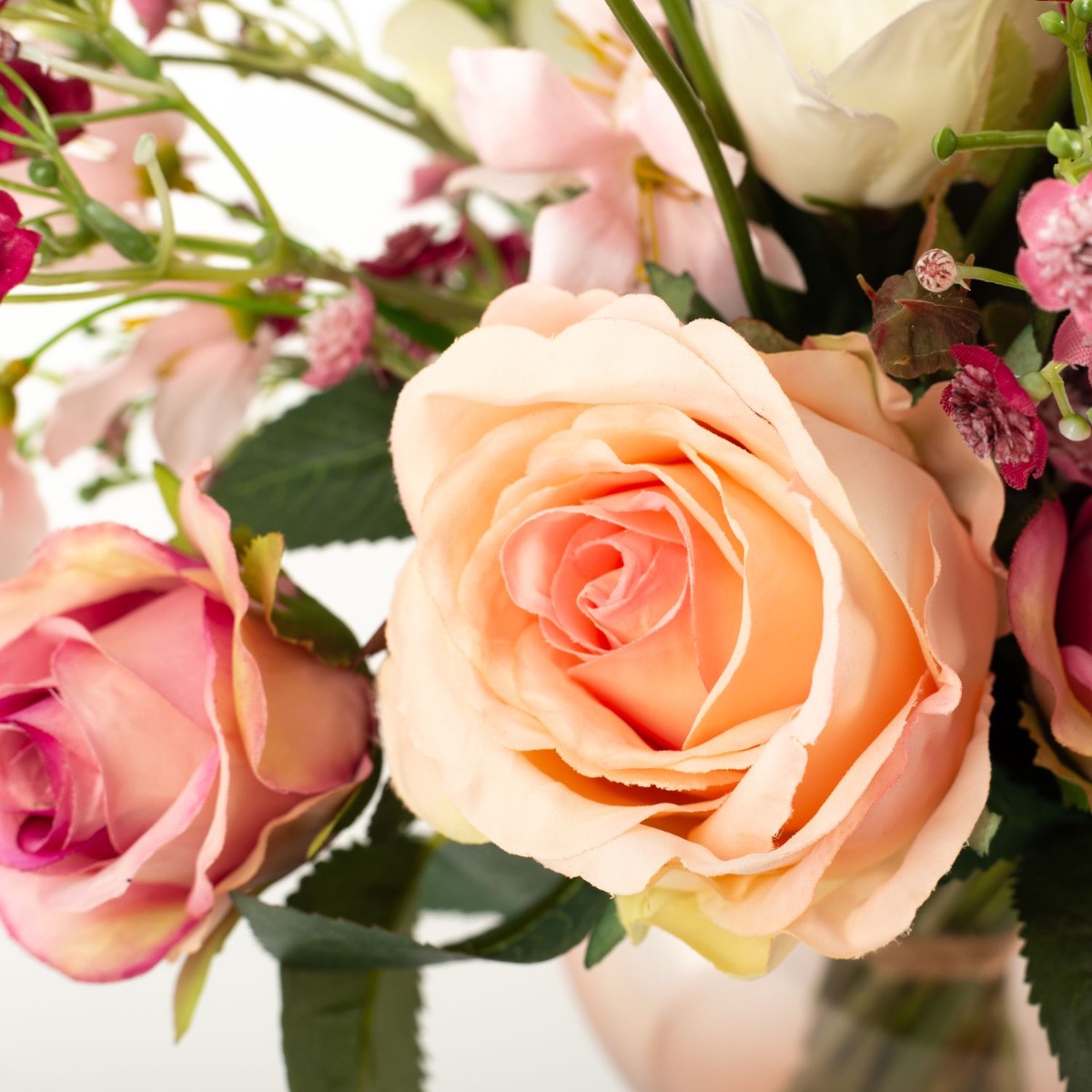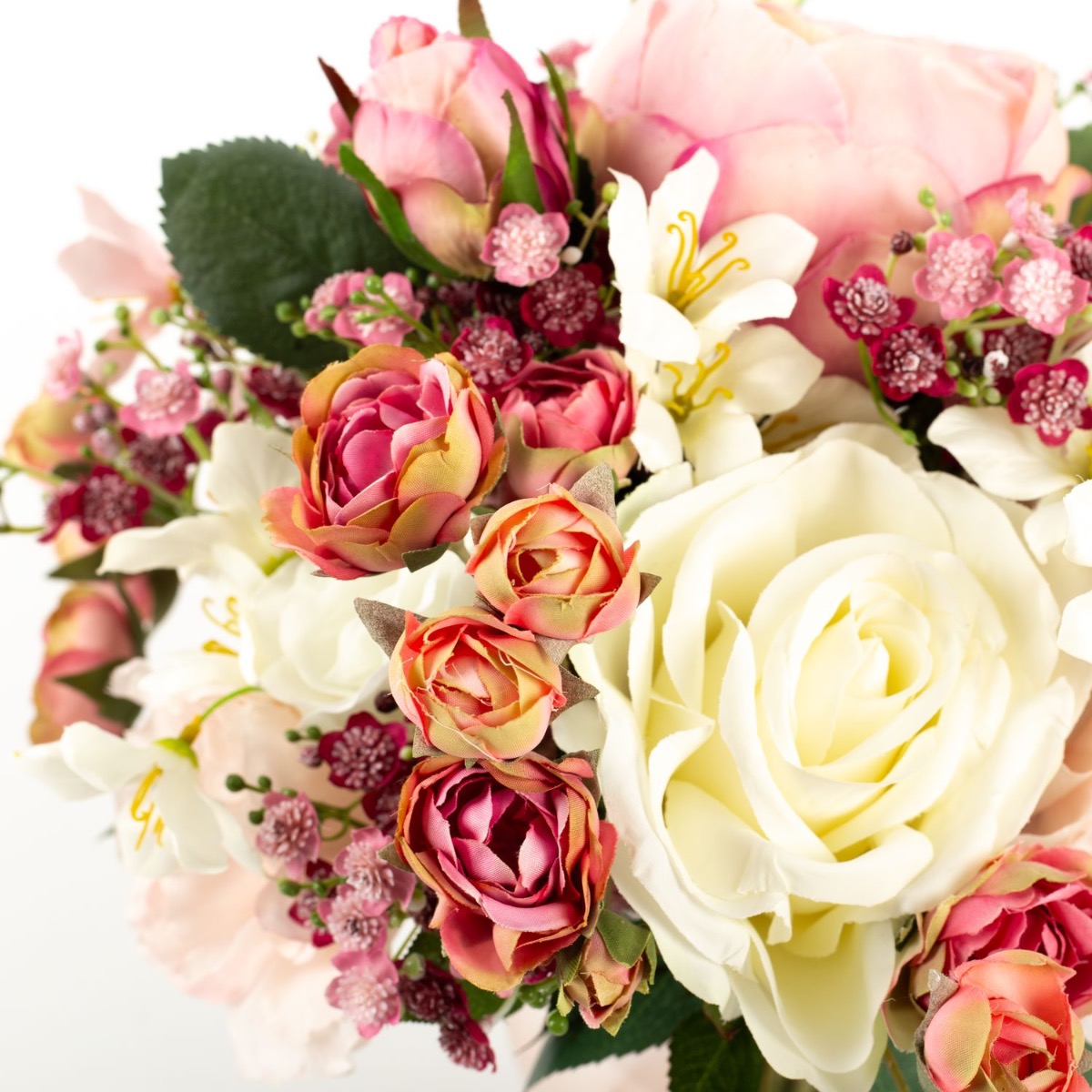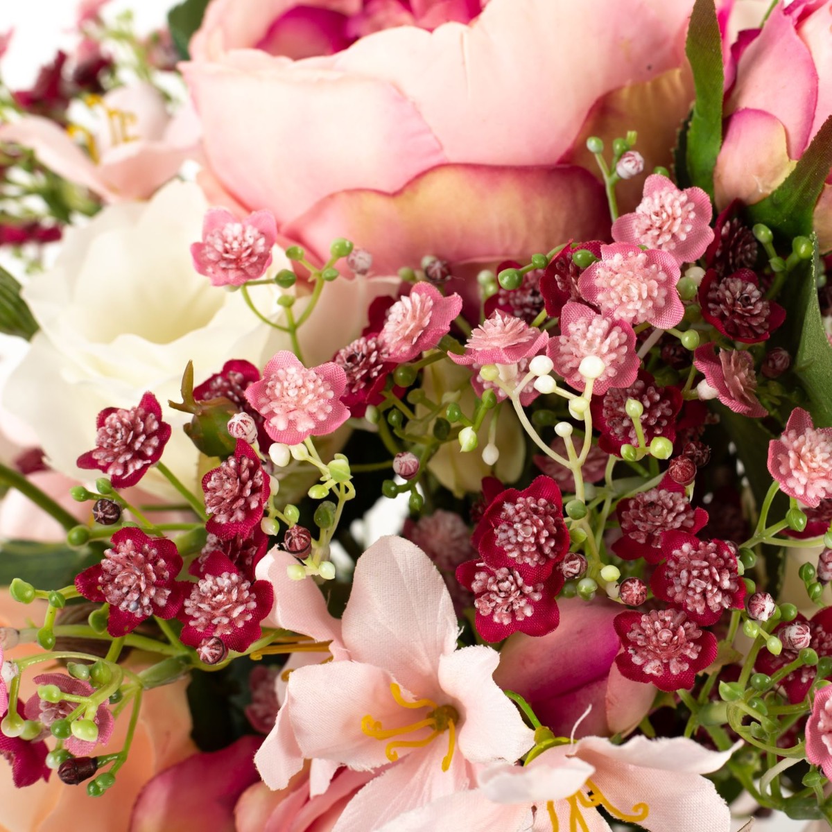Romantisches Blumenbouquet! Die eigene Hochzeit ist schon etwas ganz Besonderes im Leben. Der Hochzeitsstrauß spielt dabei eine besondere Rolle, nur leider halten echte Blumen nicht gerade lange und beginnen nach kurzer Zeit zu welken. Eine Nachgestaltung aus künstlichen Blumen kann diesen Moment festhalten und erfreut für lange Zeit. So ging es auch unserer Kundin Hanan, die ihren Brautstrauß von uns nachgestaltet bekommen wollte. Durch zahlreiche Fotos vom Originalblumenstrauß konnten wir eine perfekte Nachbildung aus Rosen, Schleierkraut und Lisianthus kreieren. Hanan freute sich schon riesig, diesen bald in den Händen halten zu dürfen. Suchst auch Du nach einem künstlichen Hochzeitsstrauß? Shop the Look!