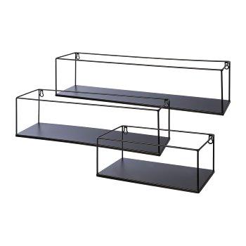 Industrial Metall Wandregal QUIANA, 3 Stück schwarz, 32x15x13cm, 50x15x14cm, 65x15x16cm