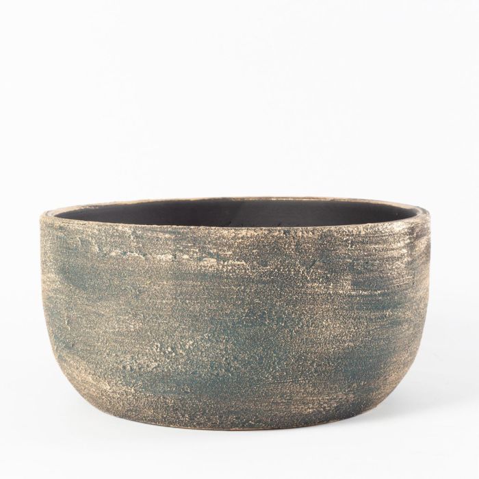 Pflanzschale AETIOS aus Keramik in Farbe blau-gold mit einem Durchmesser von ca. 28 cm und einer Höhe von ca. 13 cm.