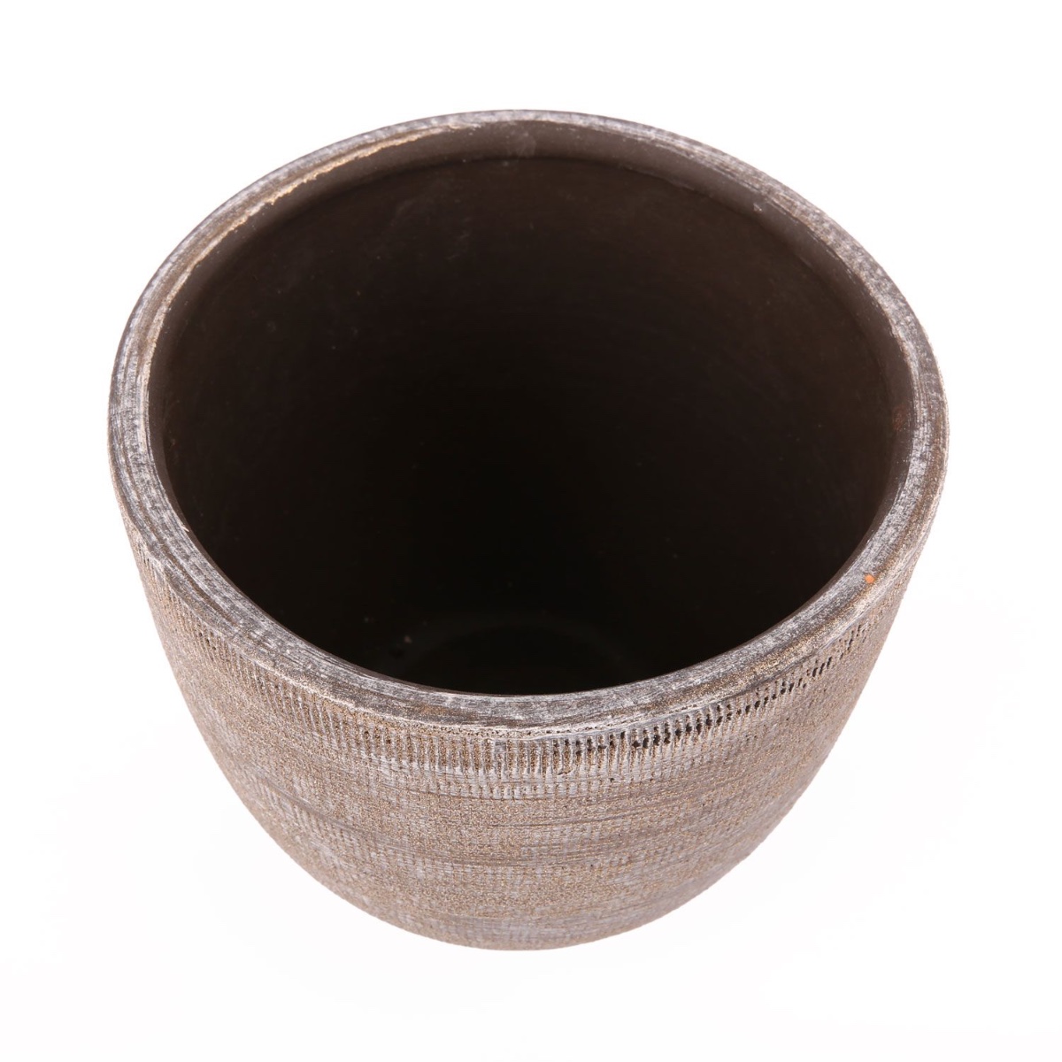 Keramik Pflanztopf KAMUNI, längsstreifen, braun, 14cm, Ø16cm