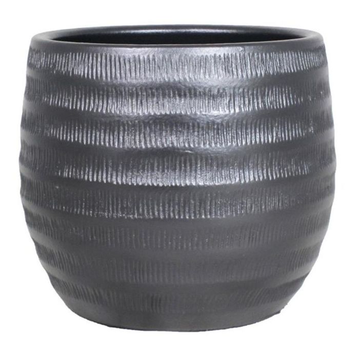 Keramik Pflanztopf TIAM mit Rillen, schwarz-matt, 11cm, Ø14cm