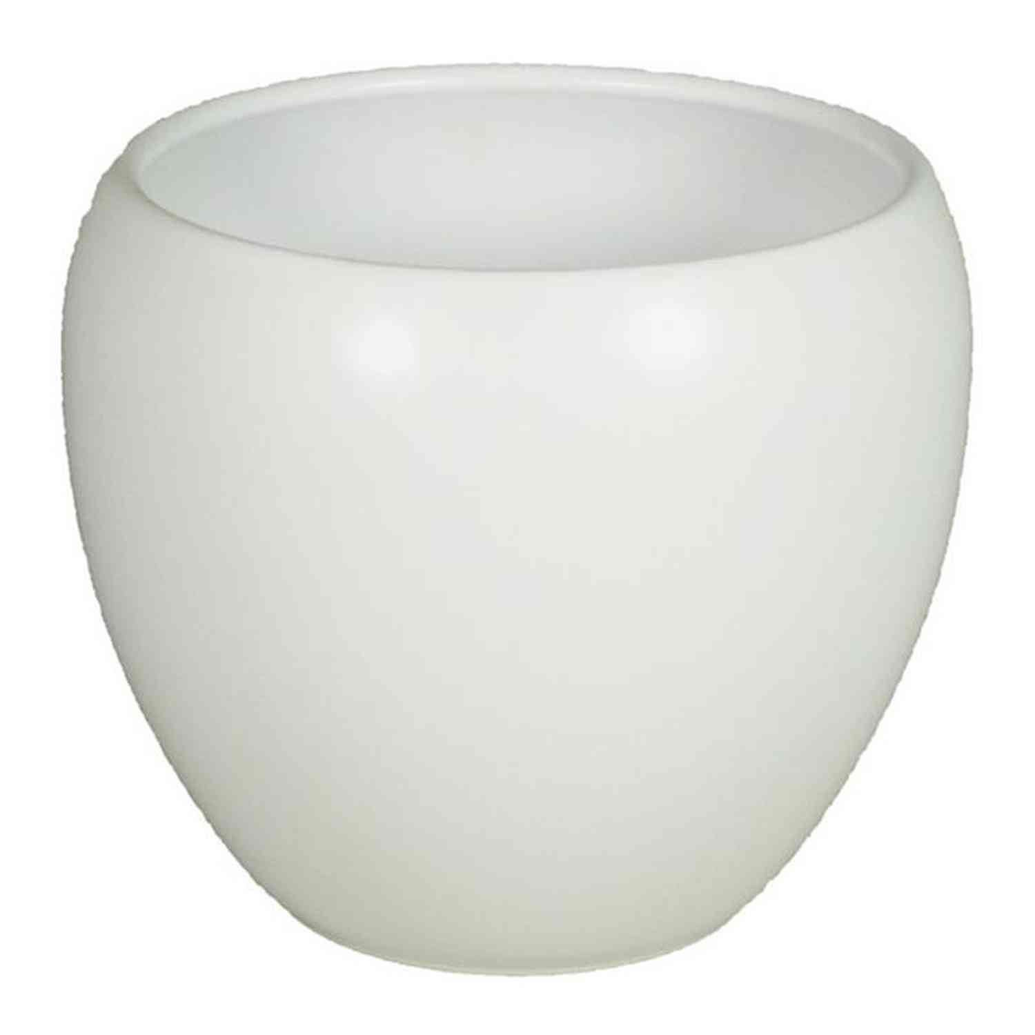 Übertopf URMIA BASAR aus Keramik in Farbe weiß mit einem Durchmesser von ca. 22 cm und einer Höhe von ca. 18.5 cm.
