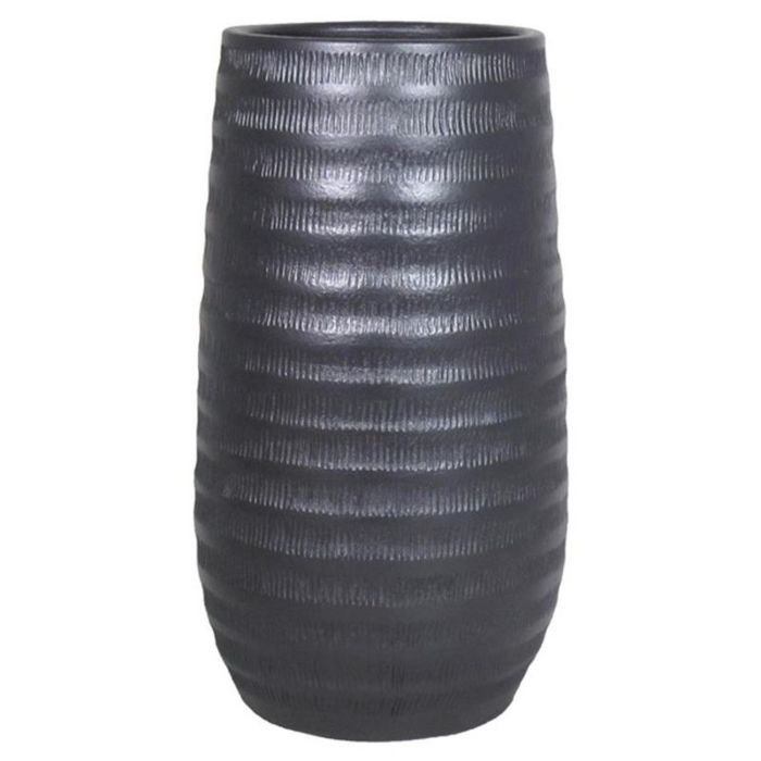Keramik Pflanzvase TIAM mit Rillen, schwarz-matt, 50cm, Ø26cm