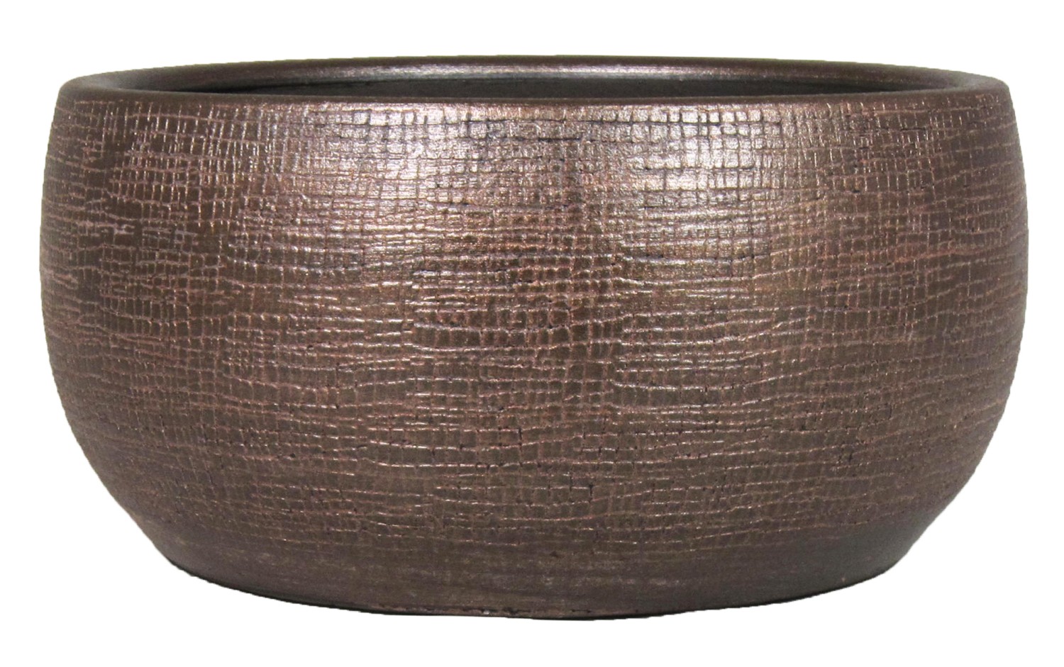 Blumenschale AGAPE aus Keramik in Farbe kupfer mit einem Durchmesser von ca. 33 cm und einer Höhe von ca. 15 cm.
