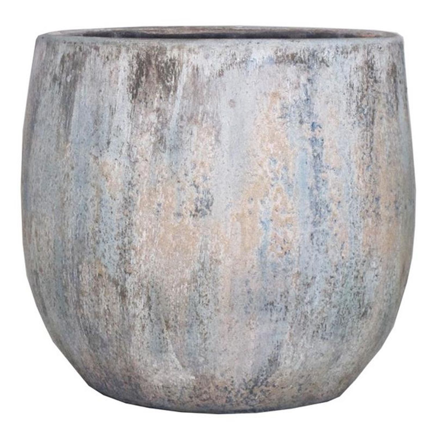 Keramik Übertopf MORTAZA mit Maserung, blau-beige, 31cm, Ø34cm