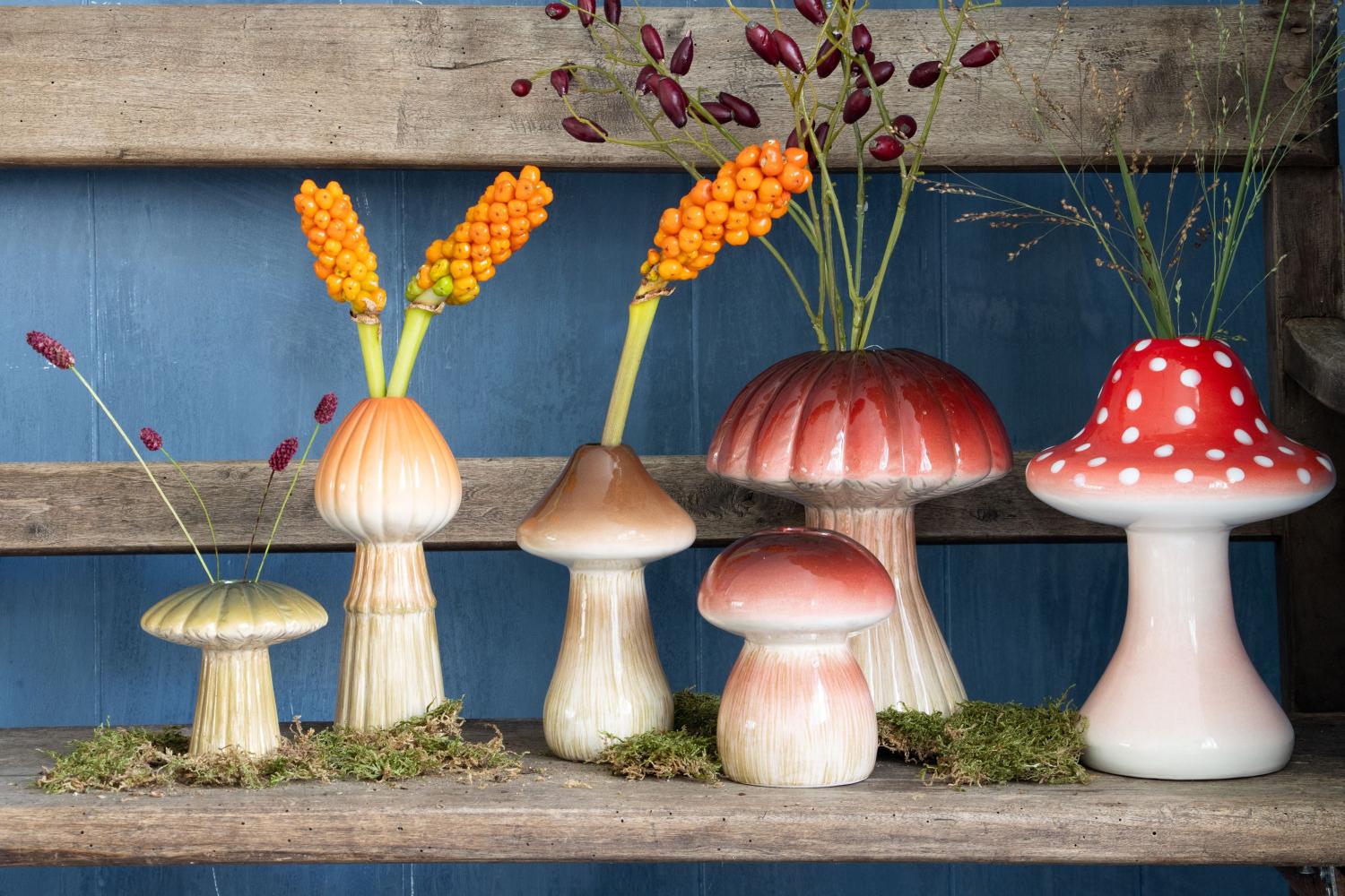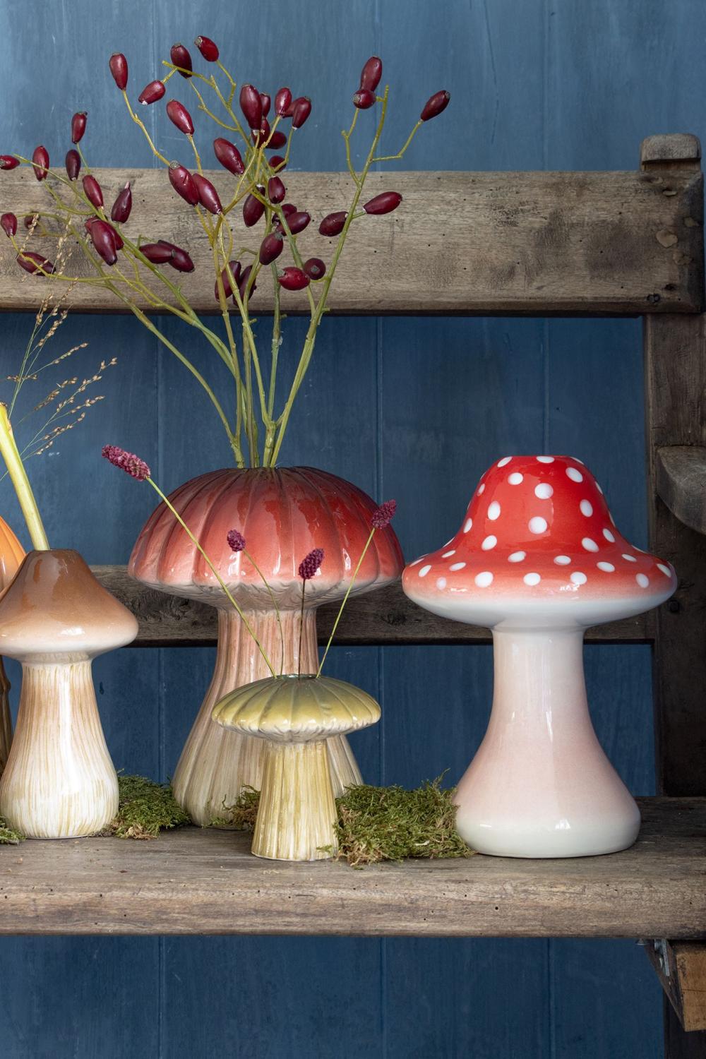 - Die Vase eignet sich perfekt für die Dekoration im Herbst. Stellen Sie den Pilz z.B. in der Mitte von einem geschmückten Kranz, mit bunten Blättern, Zweigen oder Blumen gefüllt wird Ihr Ensemble zu einem prachtvollen Anblick auf Ihrem Wohnzimmertisch, auf dem Empfangstresen im Hotel oder im Restaurant