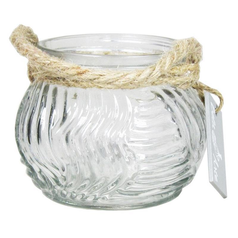 Kerzen Kugelvase FIDELMA aus Glas, gewellte Rillen, klar, 9cm, Ø11,5cm