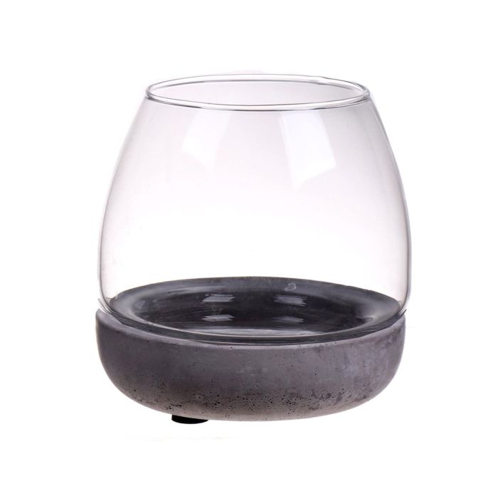 Bepflanzt mit einem Minigarten aus Erde, Kies und Sukkulenten sieht das ca. 10,5 cm hohe transparente Windlicht TONDA wunderschön aus. Der Sockel aus Beton gibt dem Arrangement den besonderen Touch.