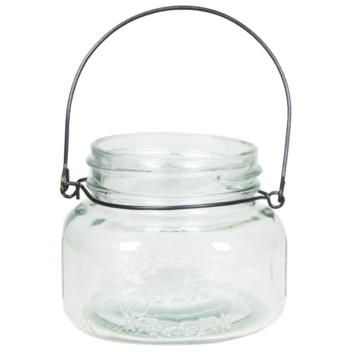 Kerzenhalter DACLAN aus Glas, Metallhenkel, klar, 9cm, Ø10,5cm