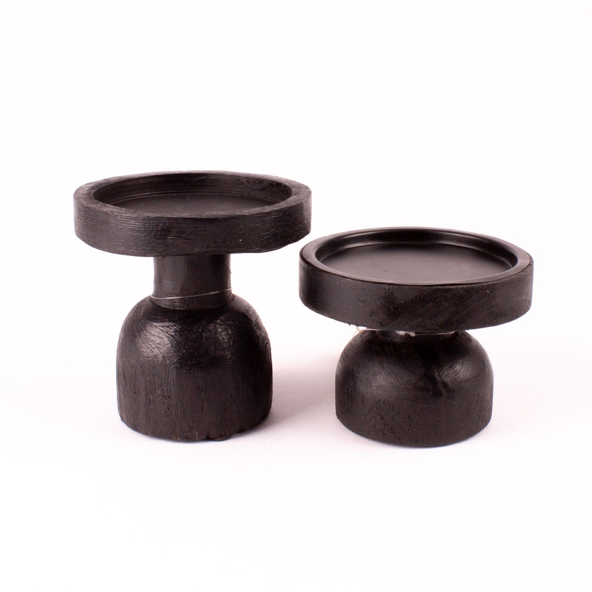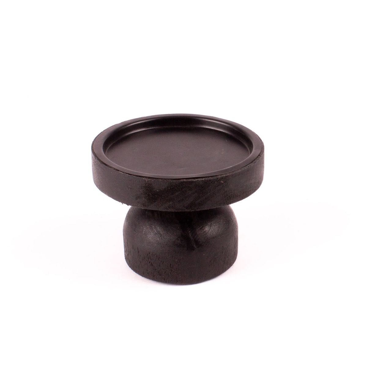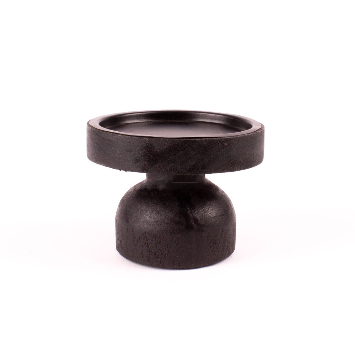 Kerzenhalter Stumpenkerze MIMARIS aus Holz, mit Fuß, schwarz, 9cm, Ø12cm