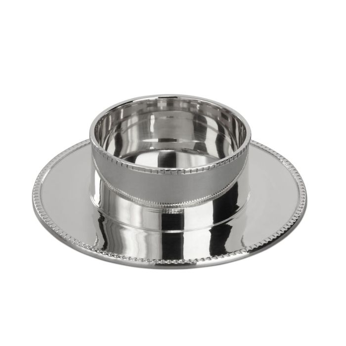 Kerzenständer Messing ANNALYSSA, für Kerzen ca. Ø5cm, mit Perlrand, vernickelt, poliert, silber, 3cm, Ø10cm