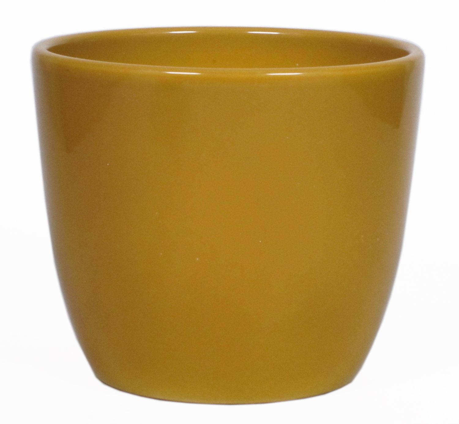Übertopf TEHERAN BASAR aus Keramik in Farbe ockergelb mit einem Durchmesser von ca. 8.5 cm und einer Höhe von ca. 6.5 cm.