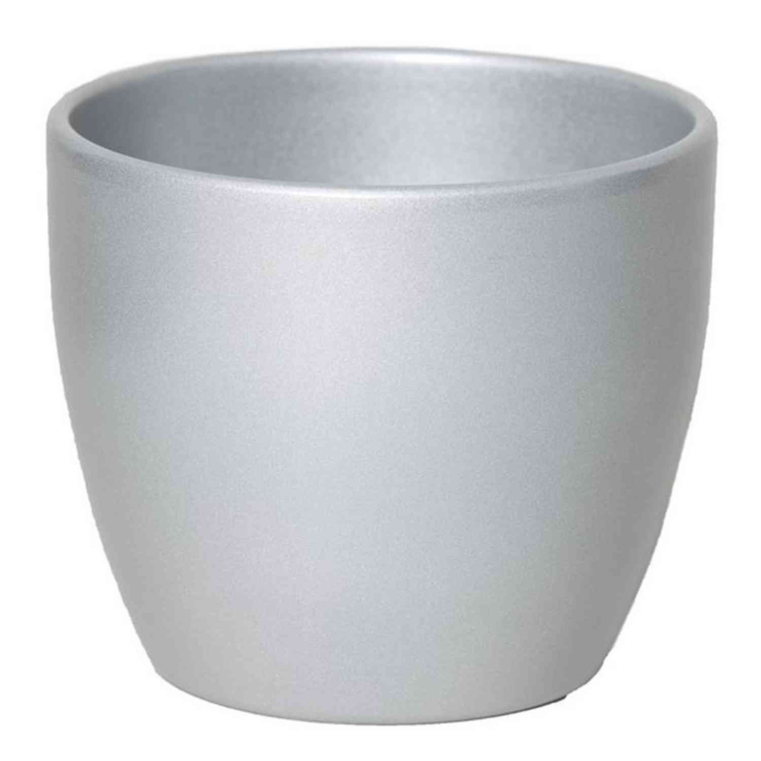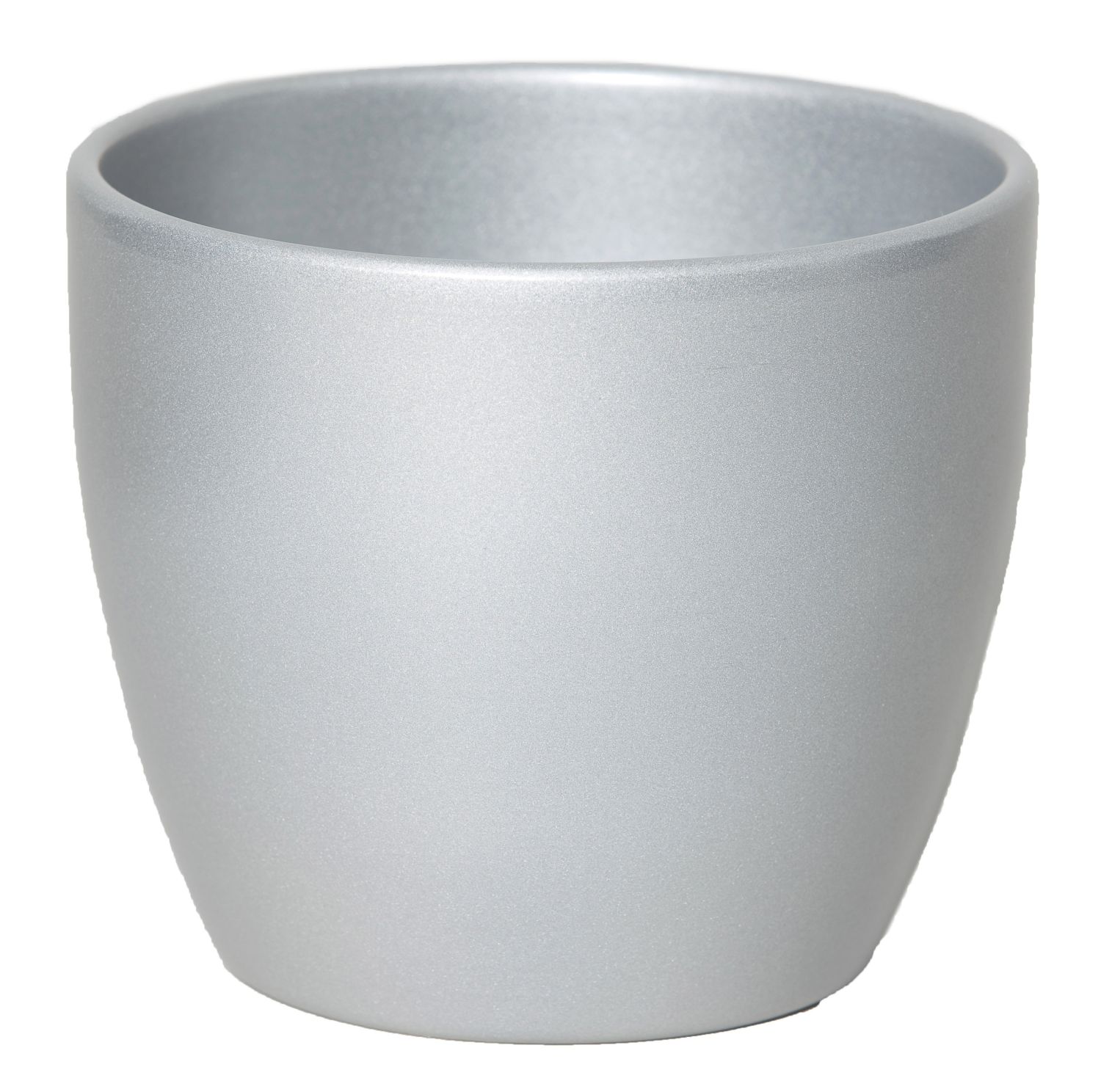 Übertopf TEHERAN BASAR aus Keramik in Farbe silber mit einem Durchmesser von ca. 7.5 cm und einer Höhe von ca. 6 cm.