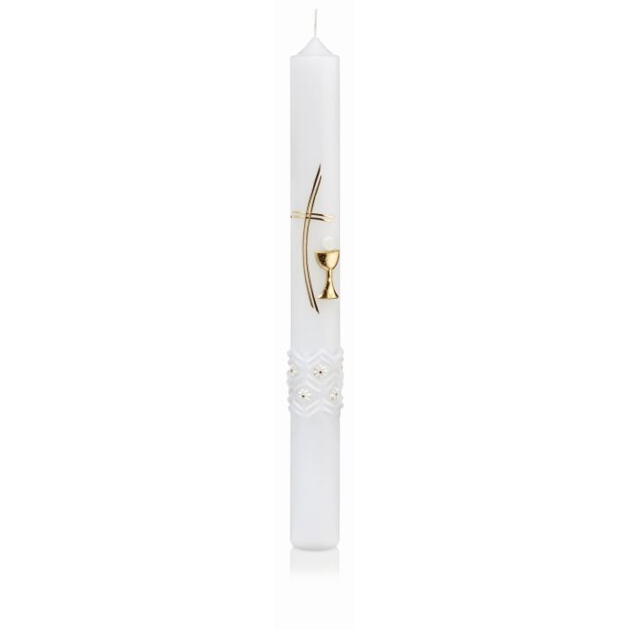 Kommunionkerze Konfirmationskerze LUCIANUS, verziert, weiß-gold, 40cm, Ø4cm - Made in Germany