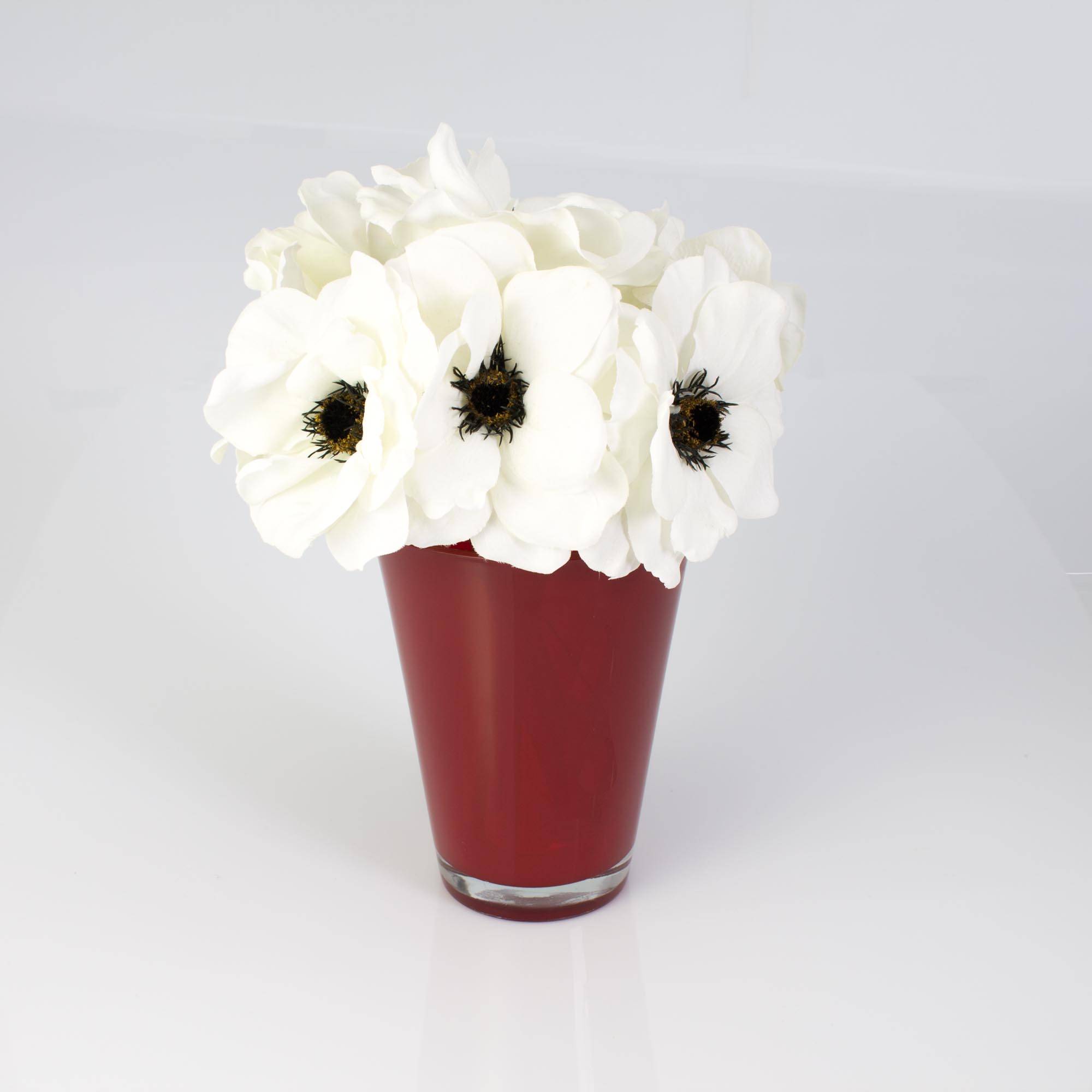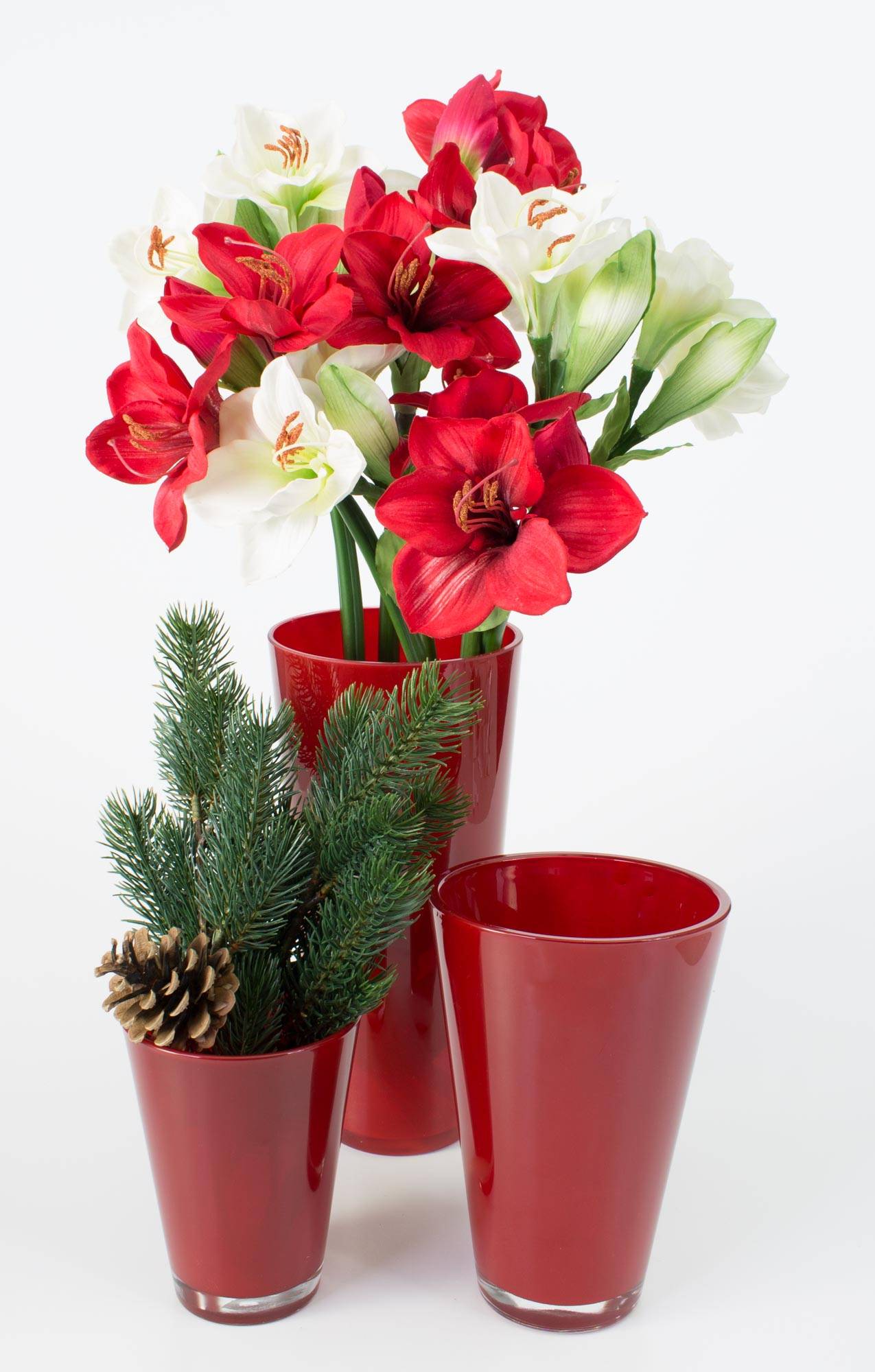 Kleine Konische Blumenvase ANNA aus Glas in Farbe rot von INNA Glas. Die Glasvase ist ca. 15 cm hoch und bietet mit 11 cm Durchmesser ausreichend Platz für kleine Blumensträuße.