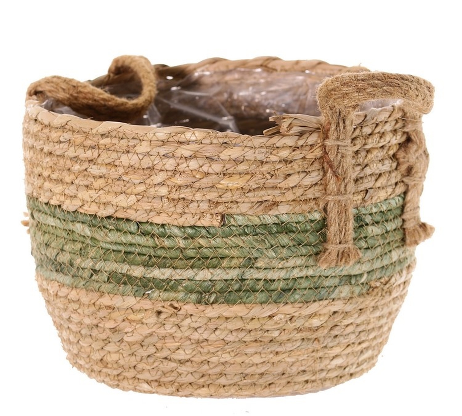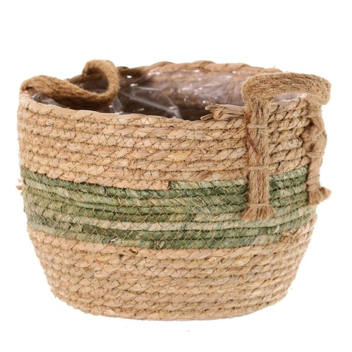 Korb Blumentopf UPALI, gebundenes Seegras, 2 Traggriffe, beige-grün, 26cm, Ø30cm
