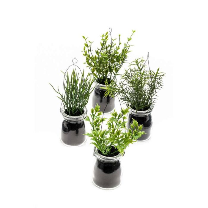 - 4 x Kunst Kräutermix Blumenampel LASEO im Glas, unterschiedliche Arten, 15cm - ALT (SKU 65363-ALT)