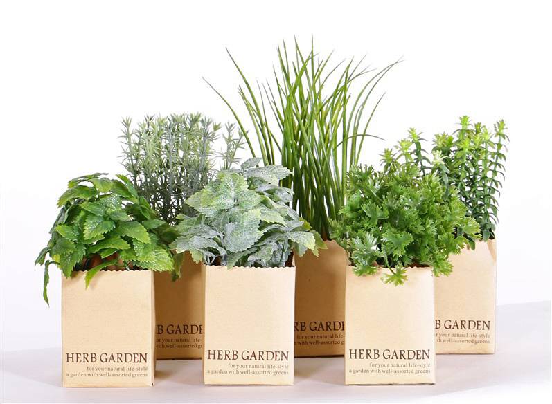 Künstliche Küchenkräuter CHUCK im Papiertopf, 6 Stück, grün, 15-25cm