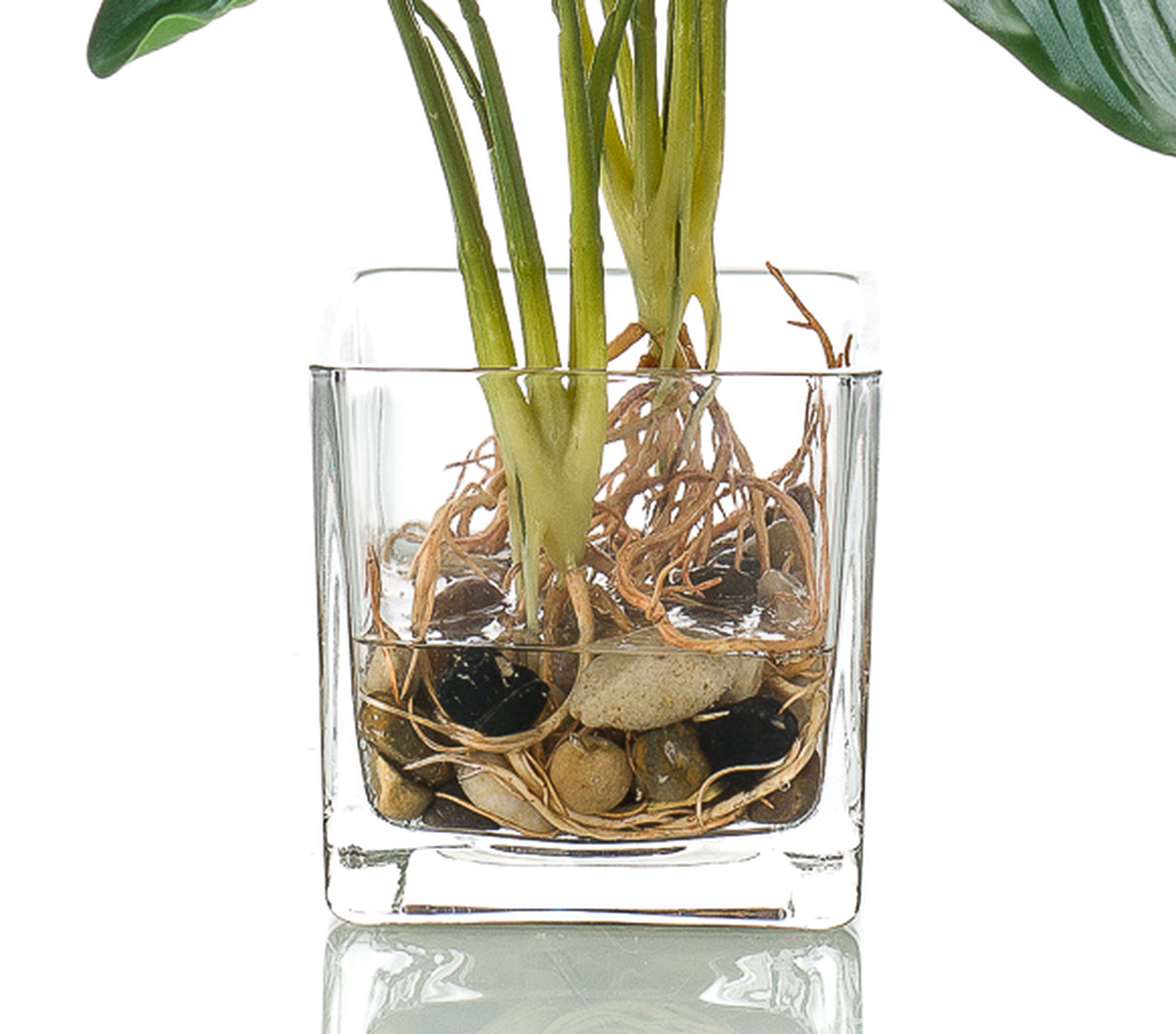 Künstliche Pflanze Calathea Orbifolia AGINA im Glastopf, grün-weiß, 40cm