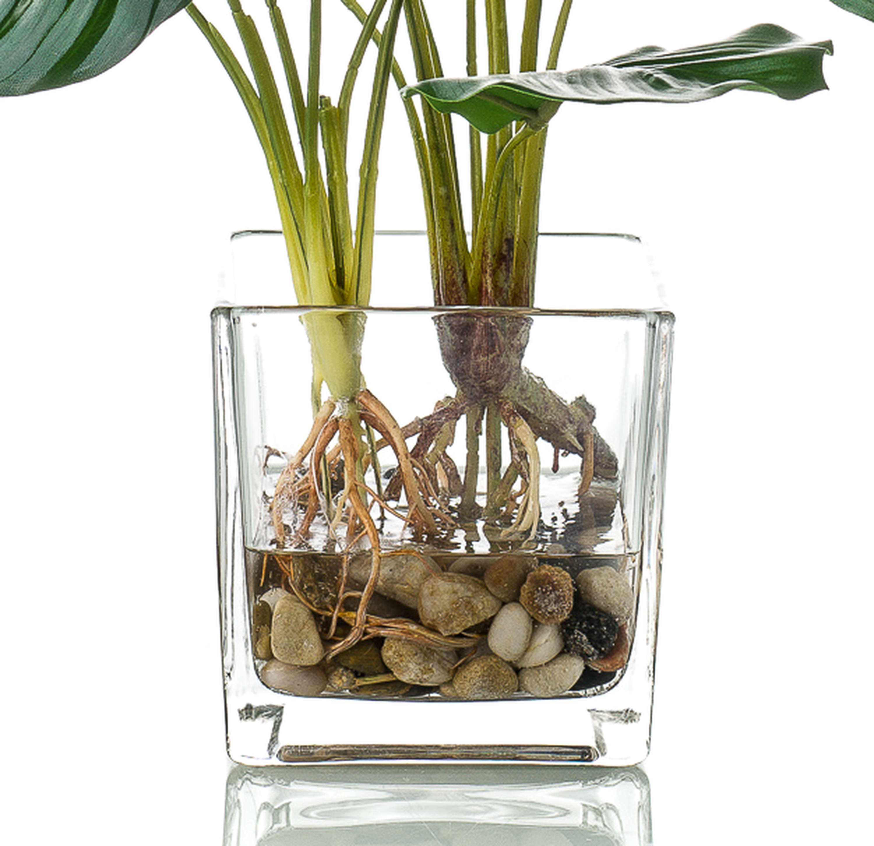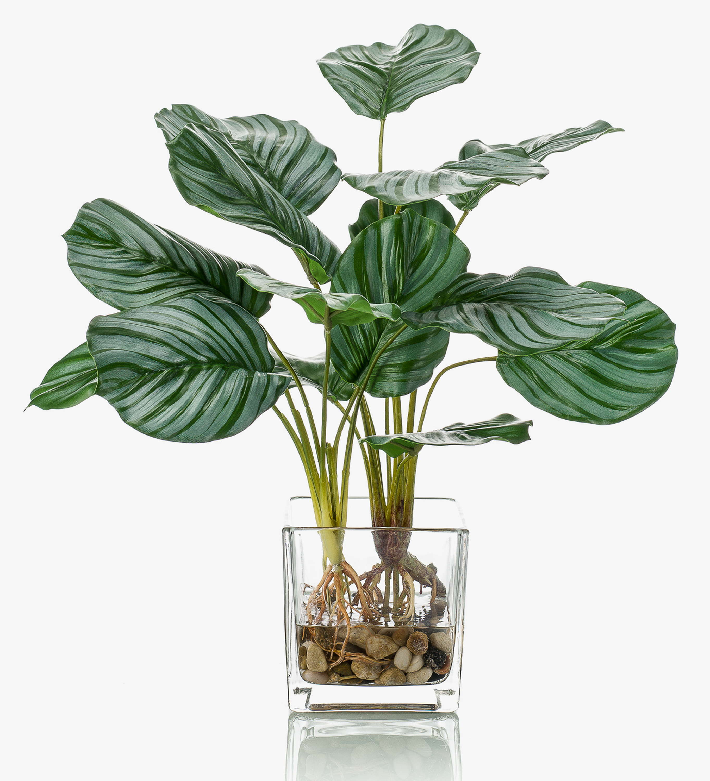 Künstliche Pflanze Calathea Orbifolia AGINA im Glastopf, grün-weiß, 45cm