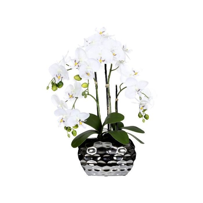 Künstliche Phalaenopsis Orchidee SINKA im Dekotopf silber, weiß, 55cm