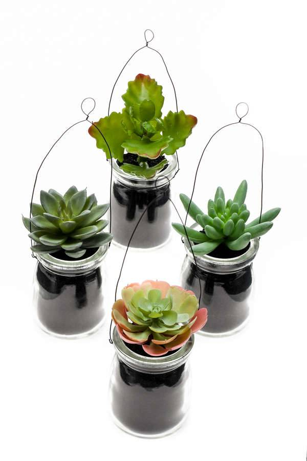 Künstliche Sukkulente Blumenampel LASEO im Dekoglas, 4 Stück, bunt, 10cm