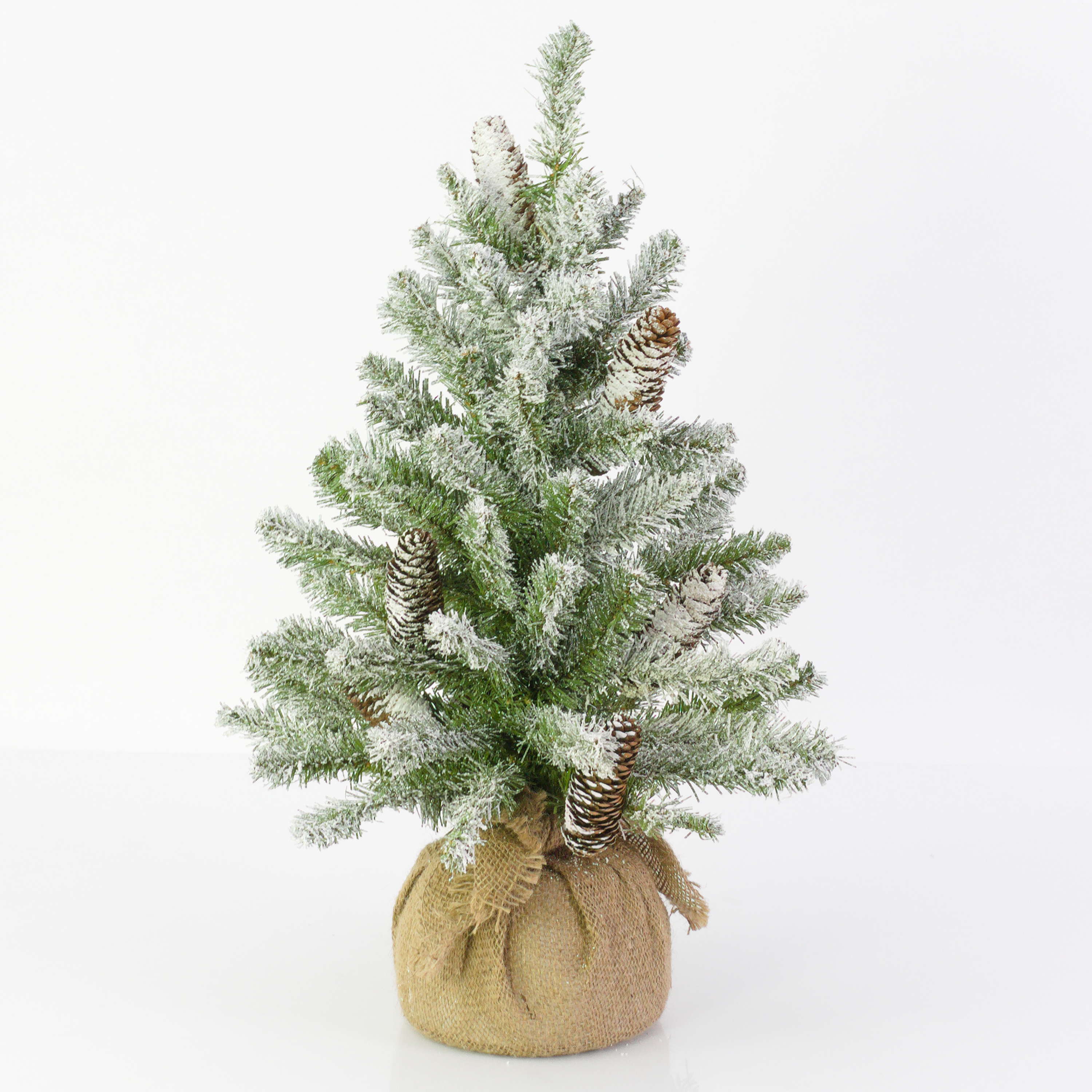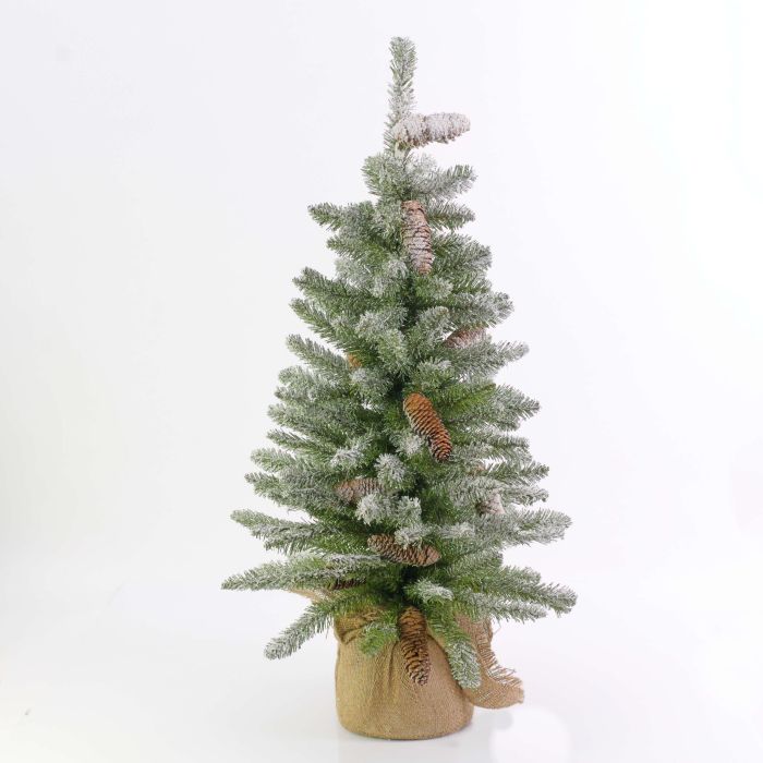 Künstliche Tanne WIEN, Jutesack, Zapfen, beschneit, 60cm, Ø40cm