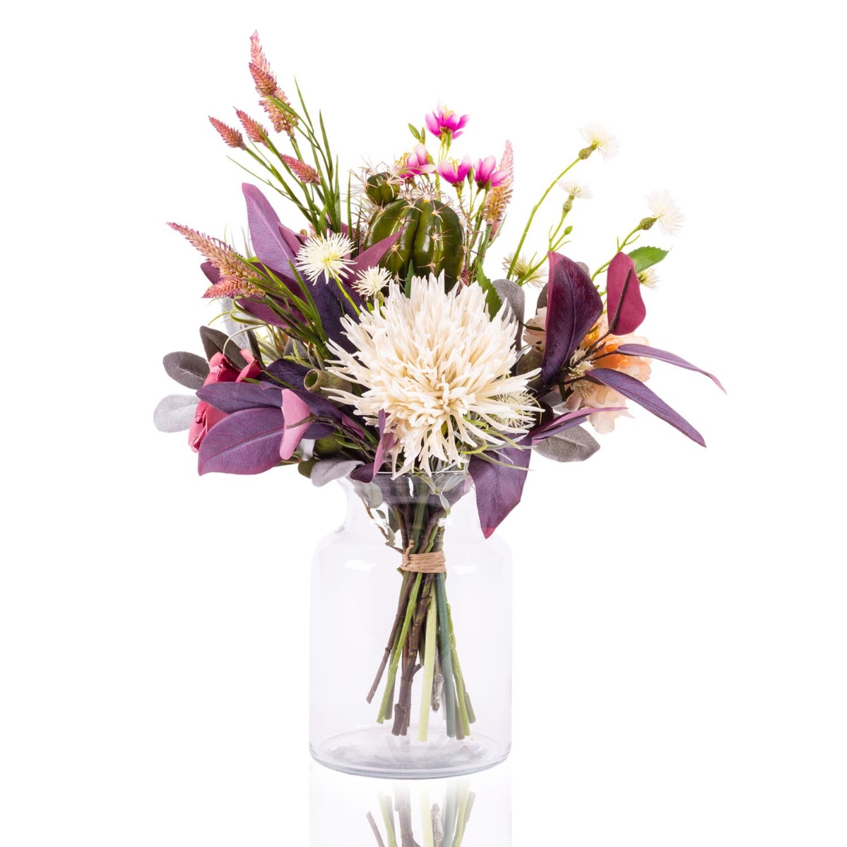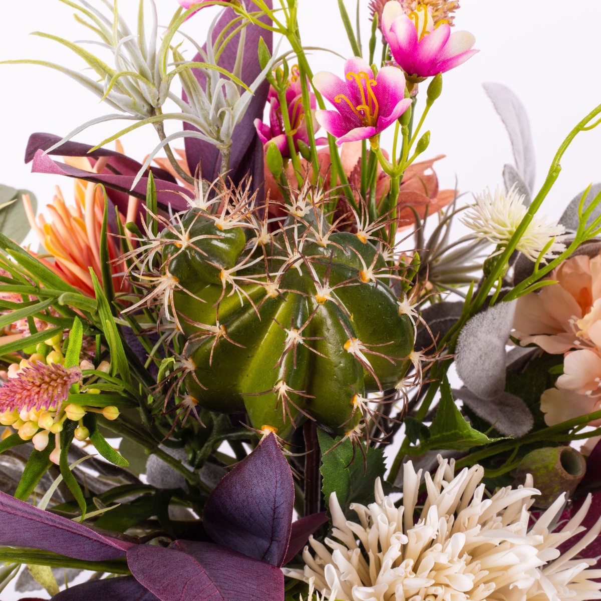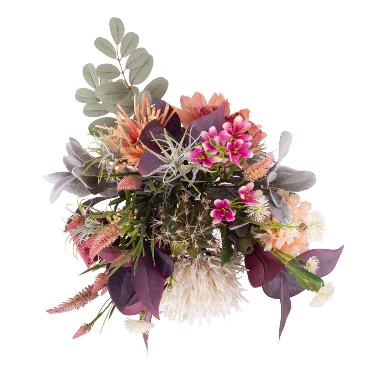 Künstlicher Blumenstrauß exotisch KALOU mit Kaktus, violett-weiß-lachs, 45cm, Ø35cm
