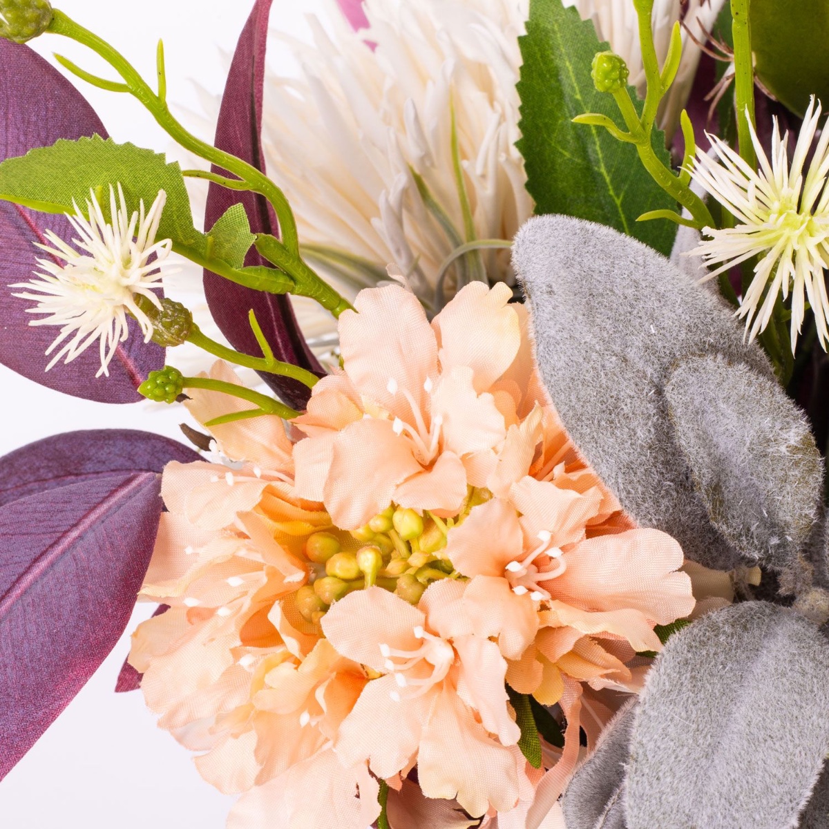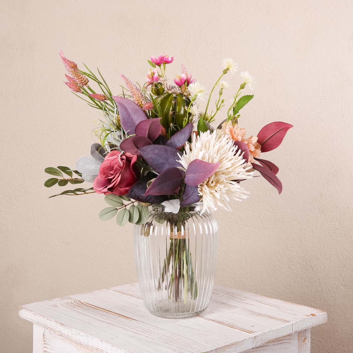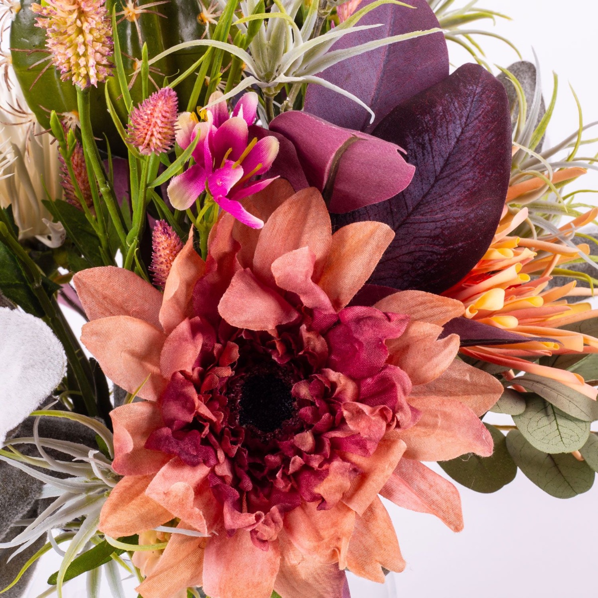 Künstlicher Blumenstrauß exotisch KALOU mit Kaktus, violett-weiß-lachs, 45cm, Ø35cm