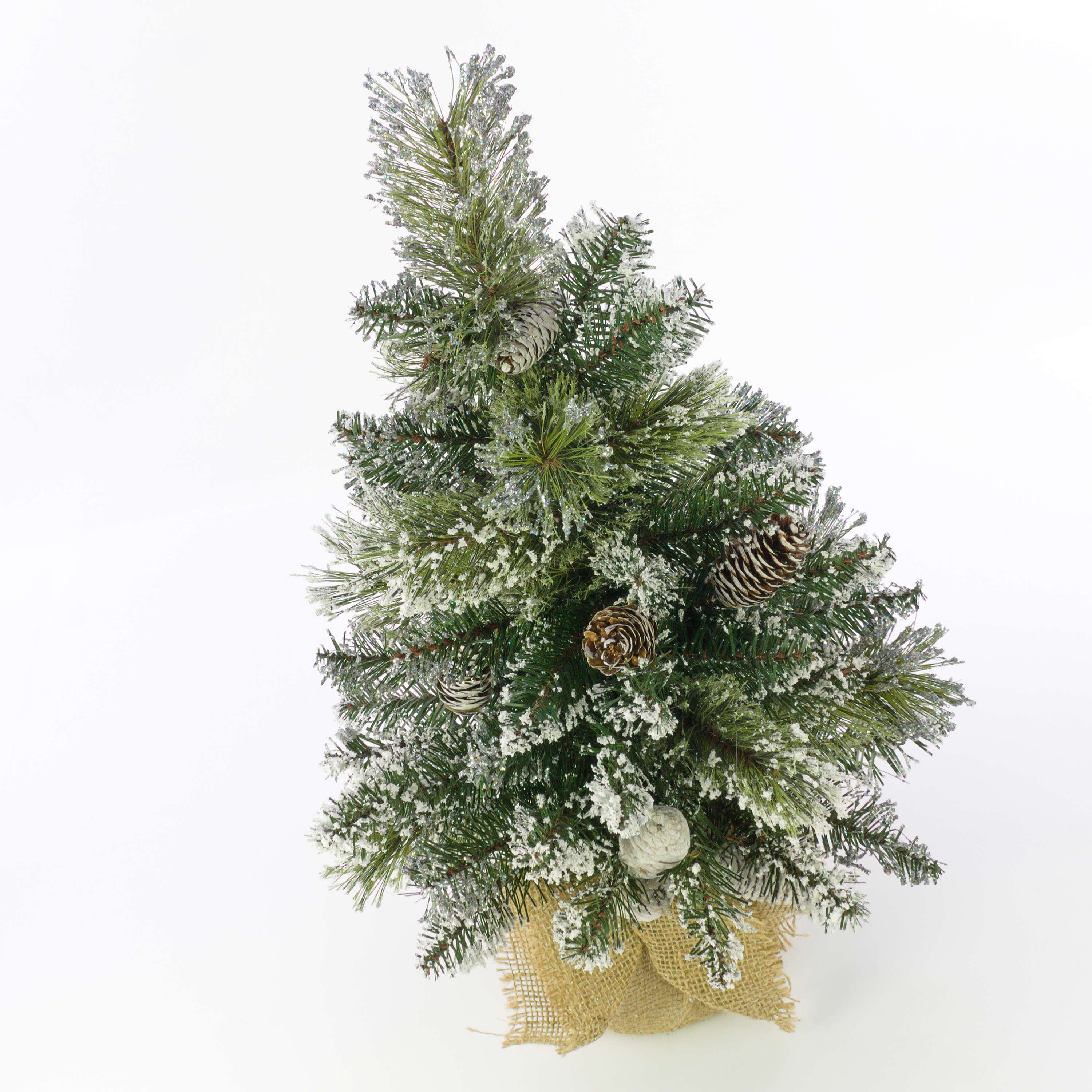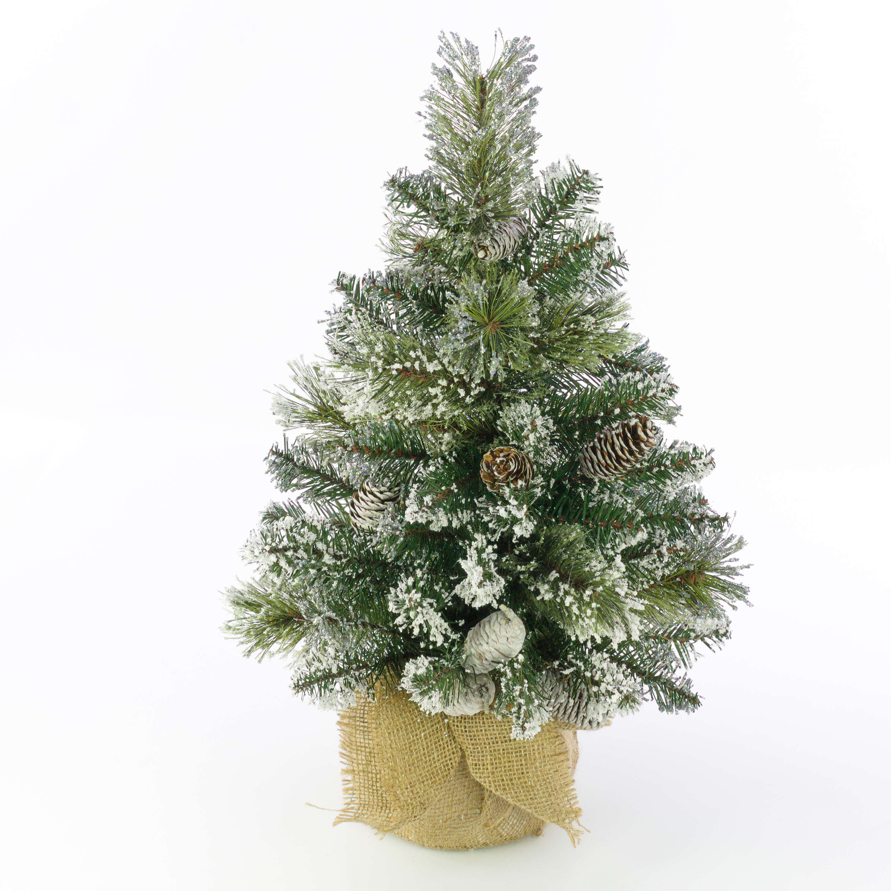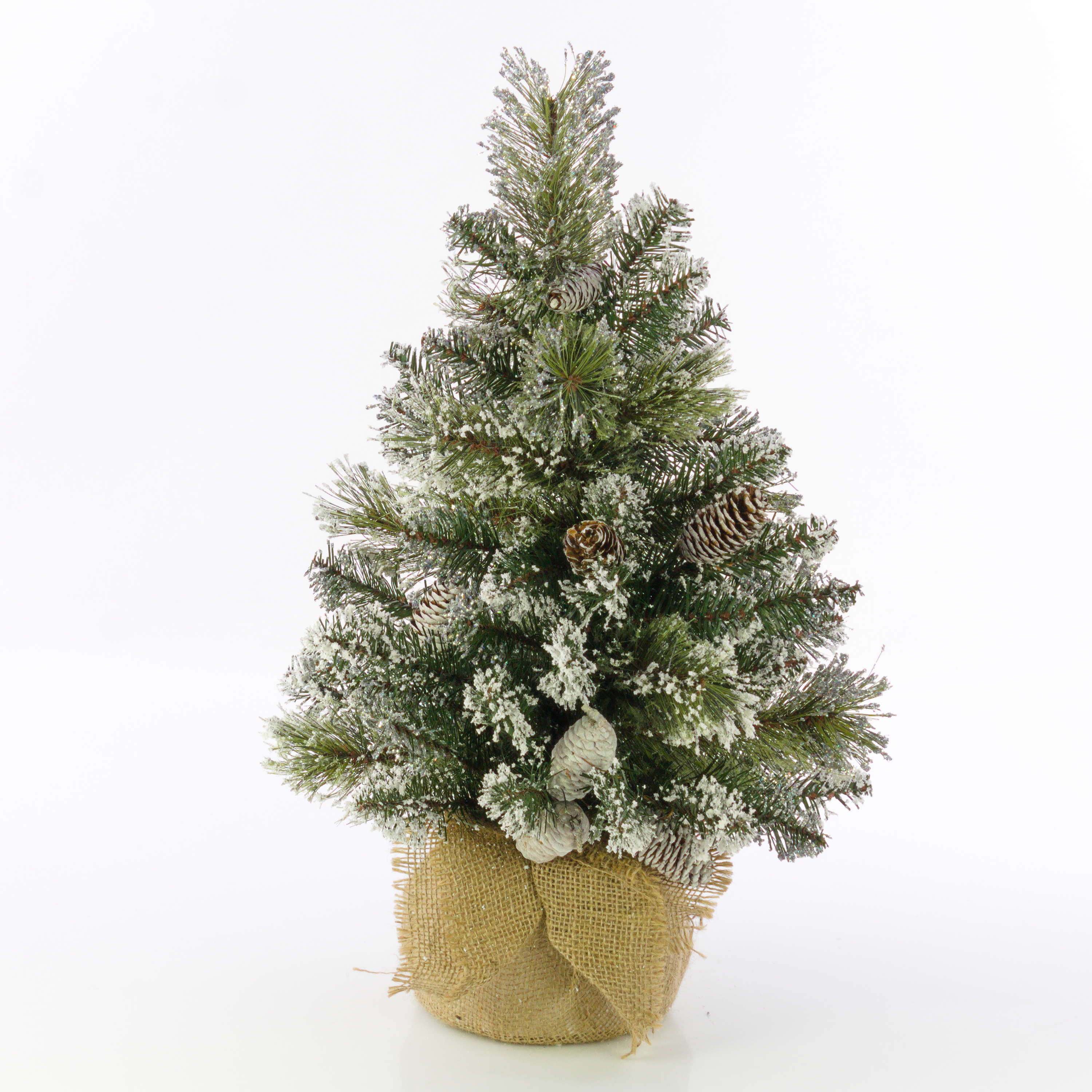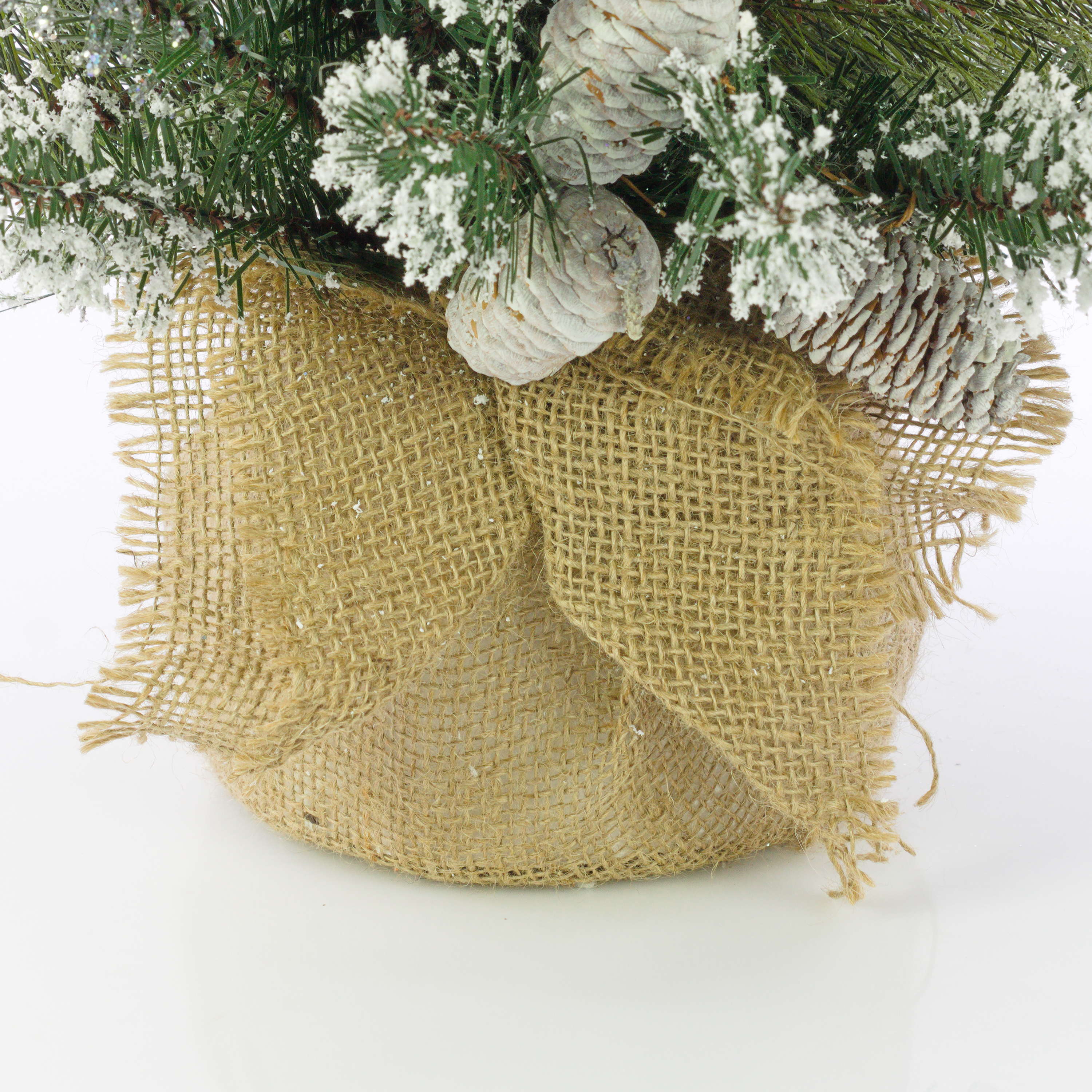 Künstlicher Christbaum RIGA, Jutesack, mit Zapfen, weiß, 60cm, Ø40cm