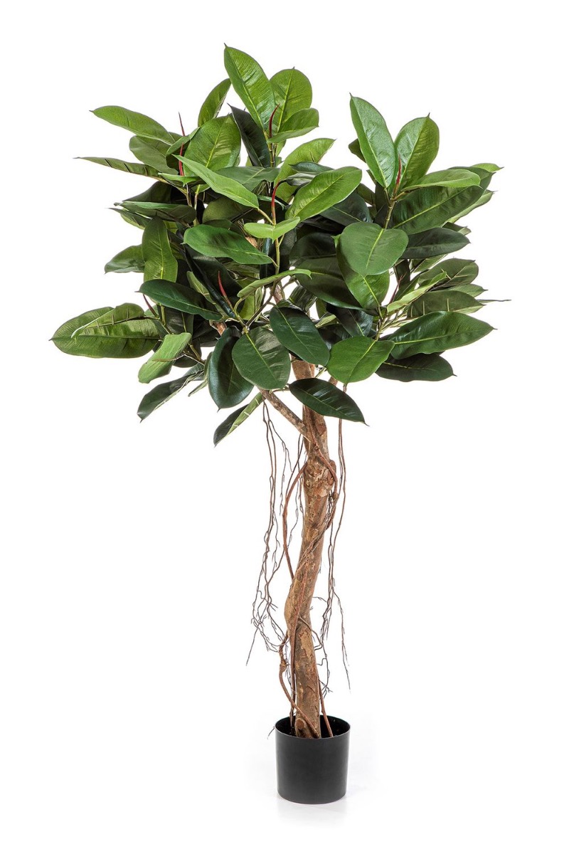 Kunstpflanze Ficus elastica ADORU mit Stamm aus echtem Holz und Lianensträngen