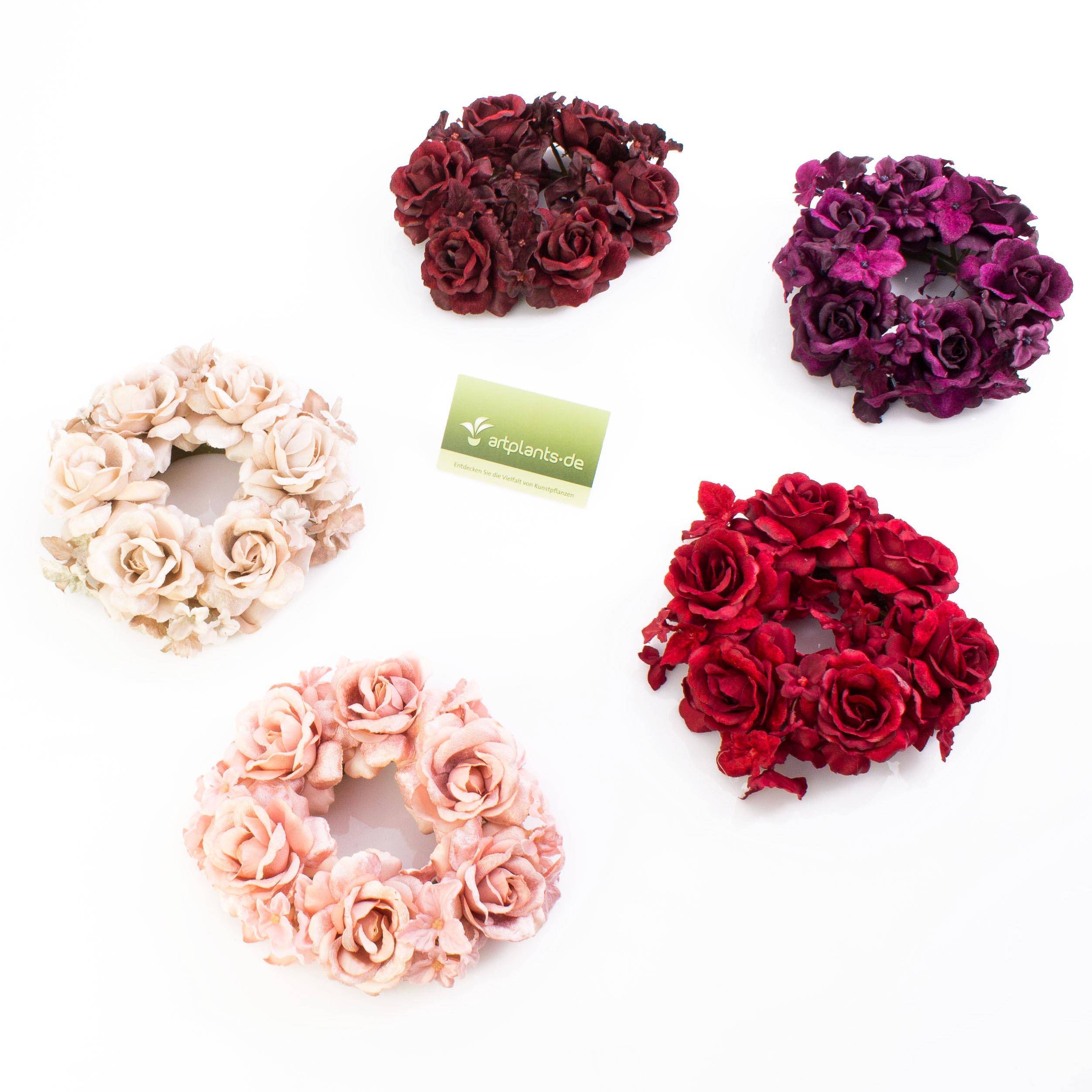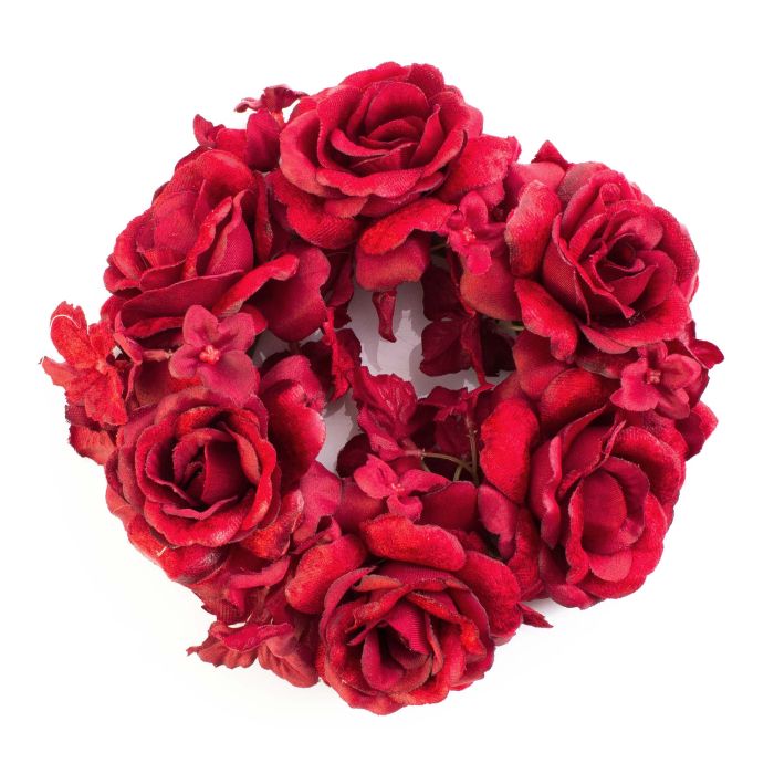Künstlicher Kerzenkranz INGA, Rose, Hortensie, rot, Ø15cm