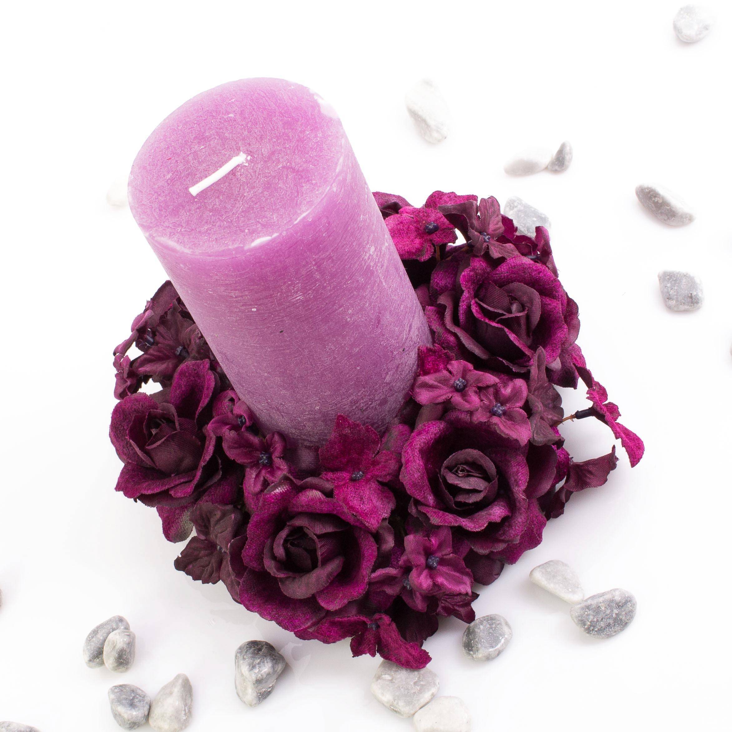 Künstlicher Kerzenkranz INGA, Rose, Hortensie, violett, Ø15cm