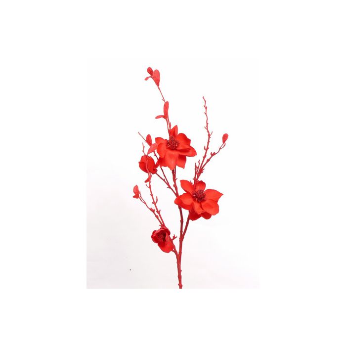 Künstlicher Magnolienzweig SANDY, Glitzer, rot, 115cm