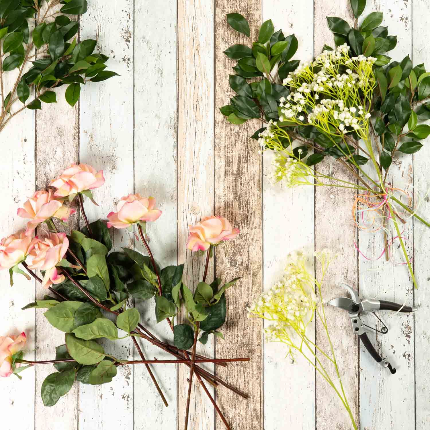 - Zusammengebunden mit einer Sisalschnur, die Blumen und Zweige können individuell gekürzt werden bzw. nach entfernen der Schnur auch einzeln für kreative Projekte verwendet werden