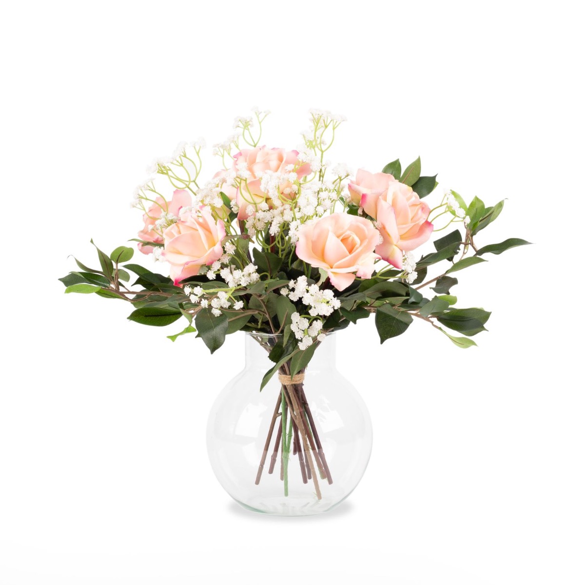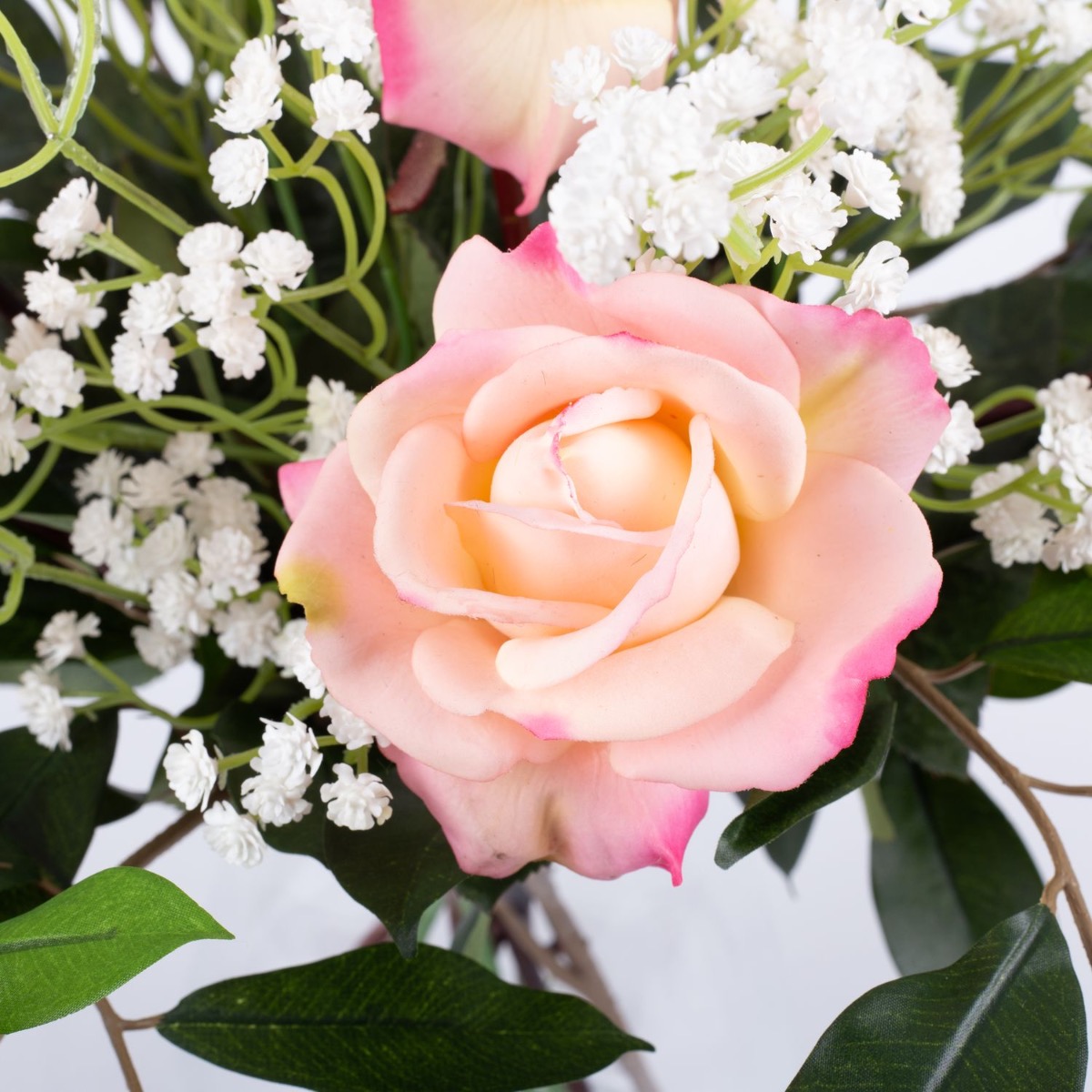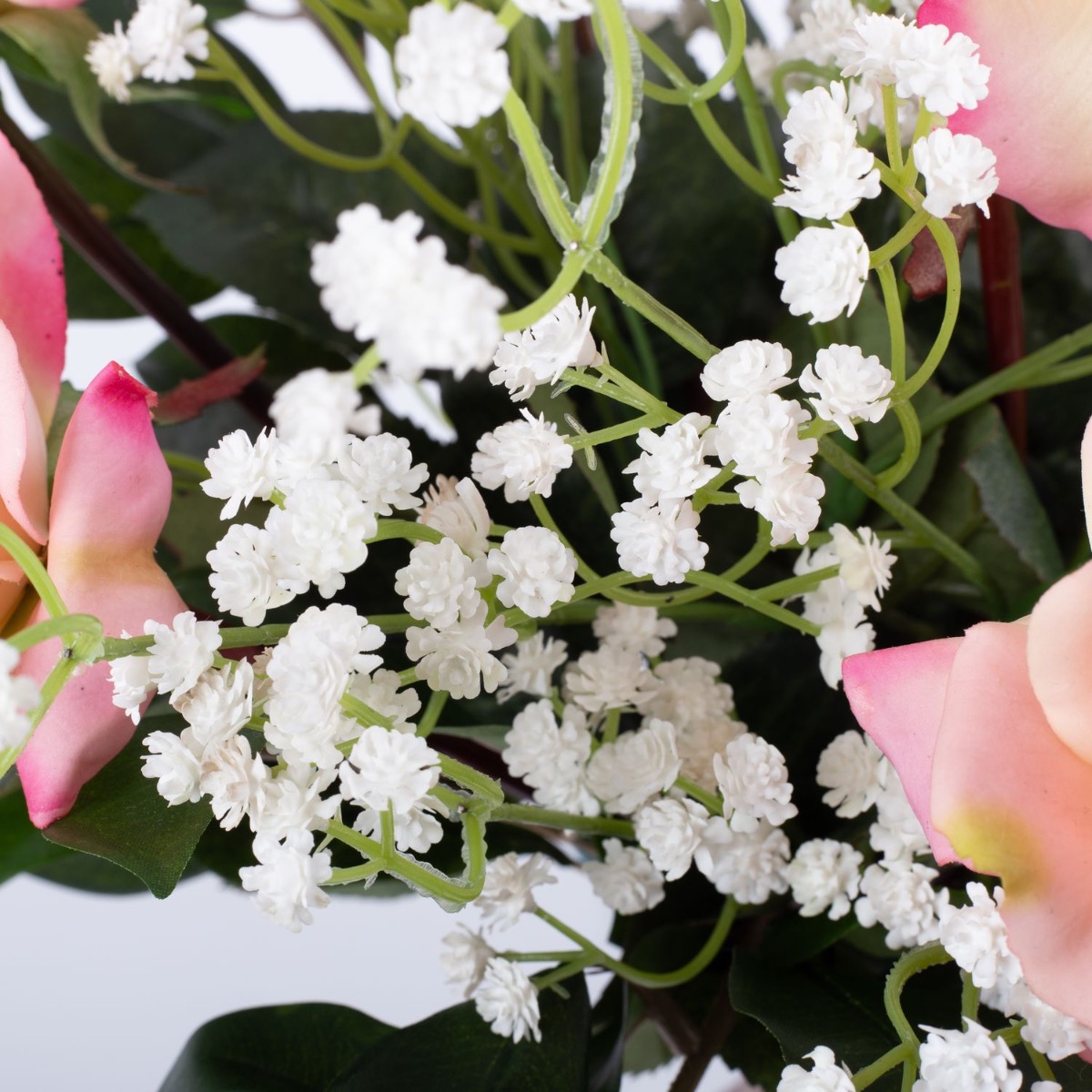 Künstlicher Rosenstrauß AMELIE, Schleierkraut, rosa, 45cm, Ø40cm
