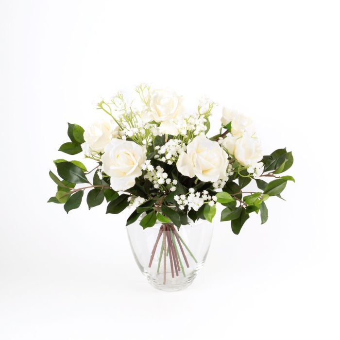 Künstlicher Rosenstrauß AMELIE, Schleierkraut, weiß, 45cm, Ø40cm