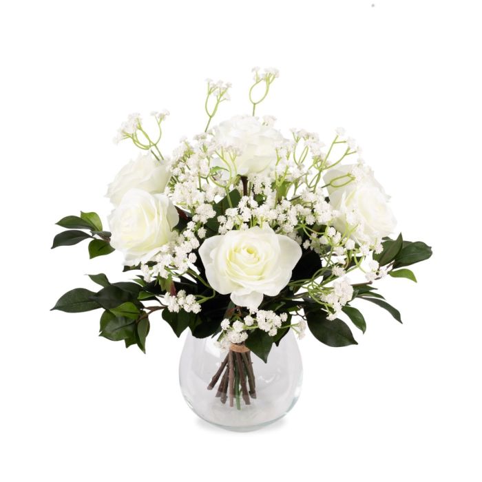 Künstlicher Rosenstrauß ELLI, Schleierkraut, creme-rosa, 35cm, Ø30cm