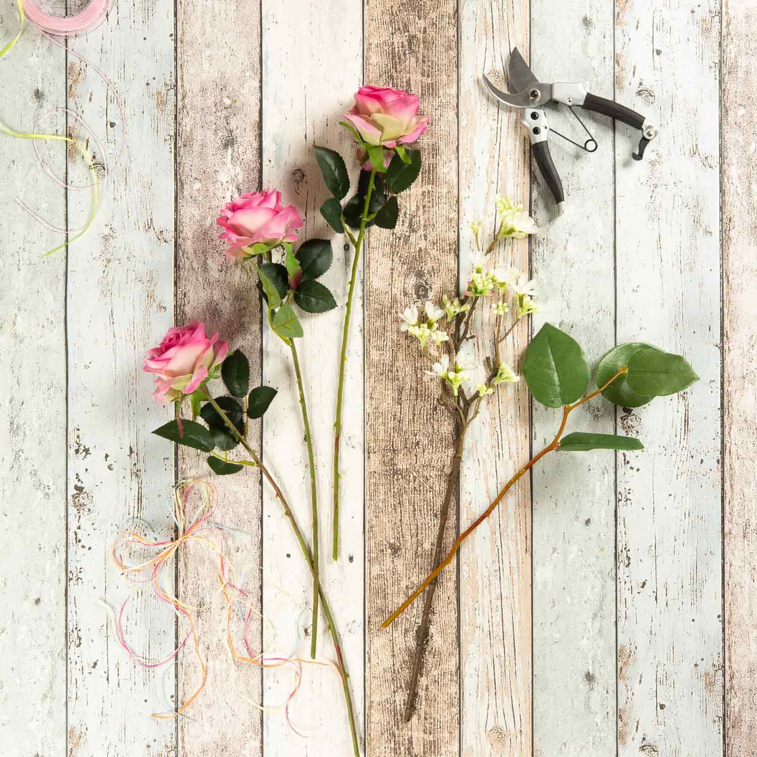 - Zusammengebunden mit einer Sisalschnur, die Blumen und Zweige können individuell gekürzt werden bzw. nach entfernen der Schnur auch einzeln für kreative Projekte verwendet werden