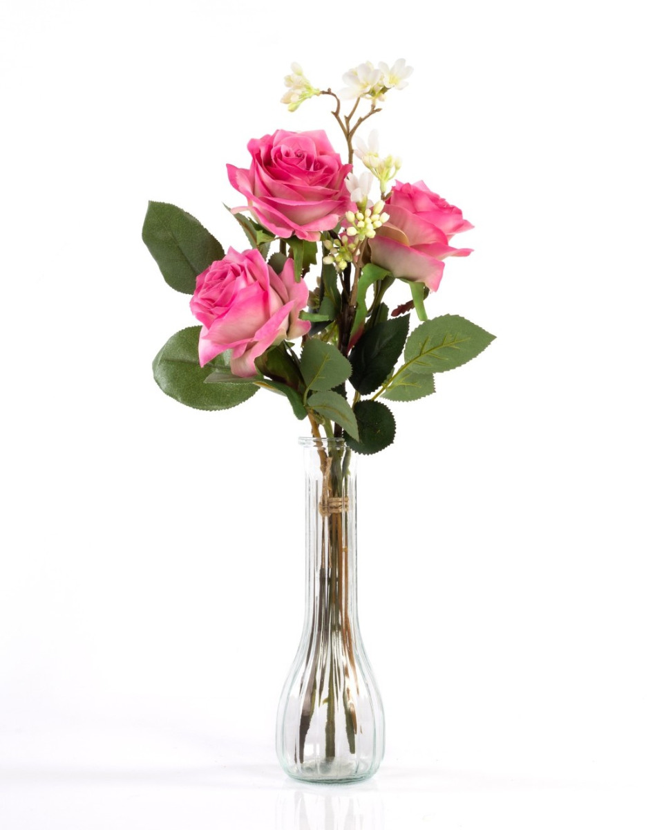 Künstlicher Rosenstrauß SIMONY mit Beiwerk, pink, 45cm, Ø20cm