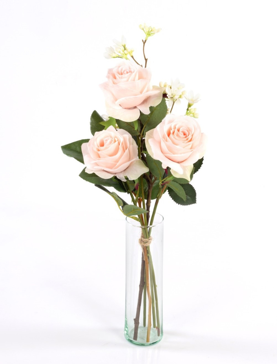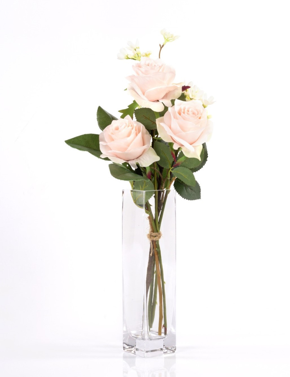 In Deutschland handgebundener, kleiner Rosen Strauß SIMONY aus 3 zartrosa farbigen Rosen. Das künstliche Arrangement wird von der Blume Sieben Söhne des Himmels umspielt und durch frisches Grün des Apfelblattzweiges ergänzt. Der Kunst Blumenstrauß dekoriert Ihre Tischvase zu verschiedenen Tafel Anlässen wie z.B. Valentinstag, Jahrestag oder als Beigabe zu einem Geburtstagsgeschenk, uvm. Das Blumenensemble kann auch wunderbar zu einem üppigen Strauß erweitert werden, ergänzen Sie einfach noch weitere SIMONY-Sträuße ob Farbgleich oder buntgemischt, lassen Sie Ihrer Fantasie freien Lauf.