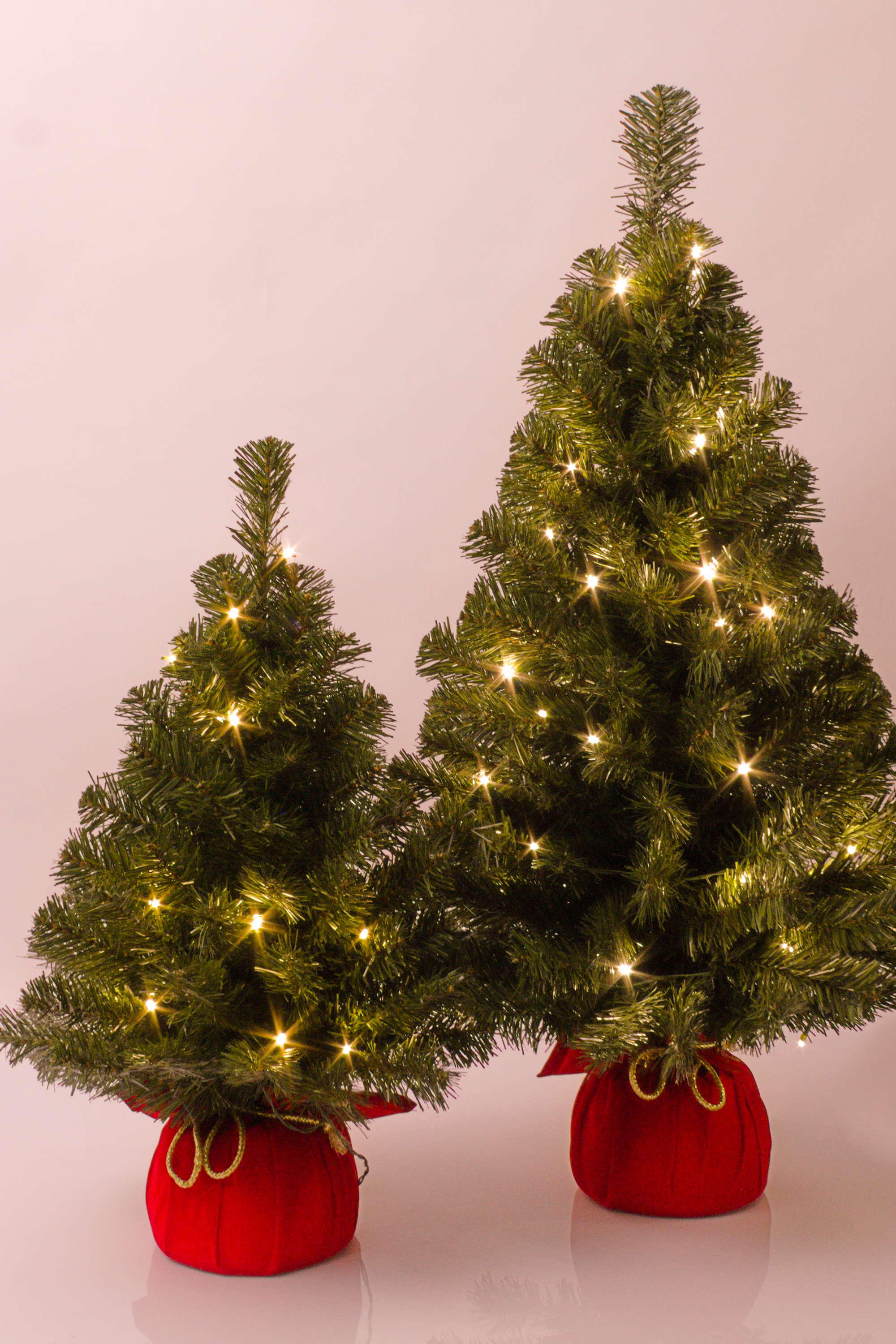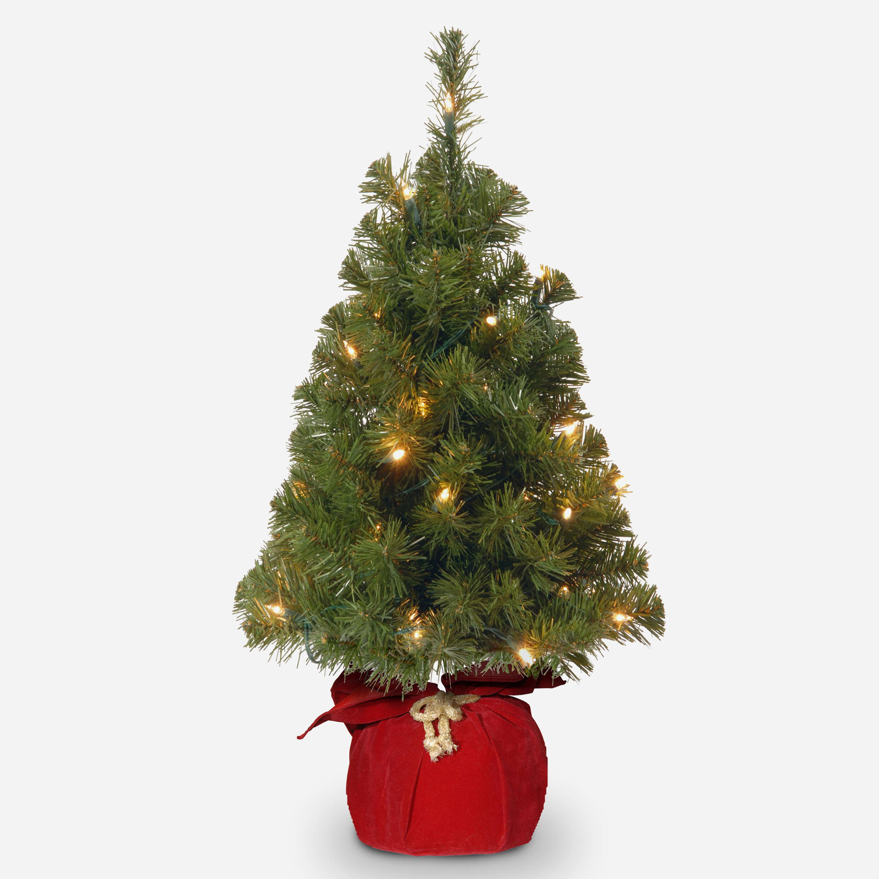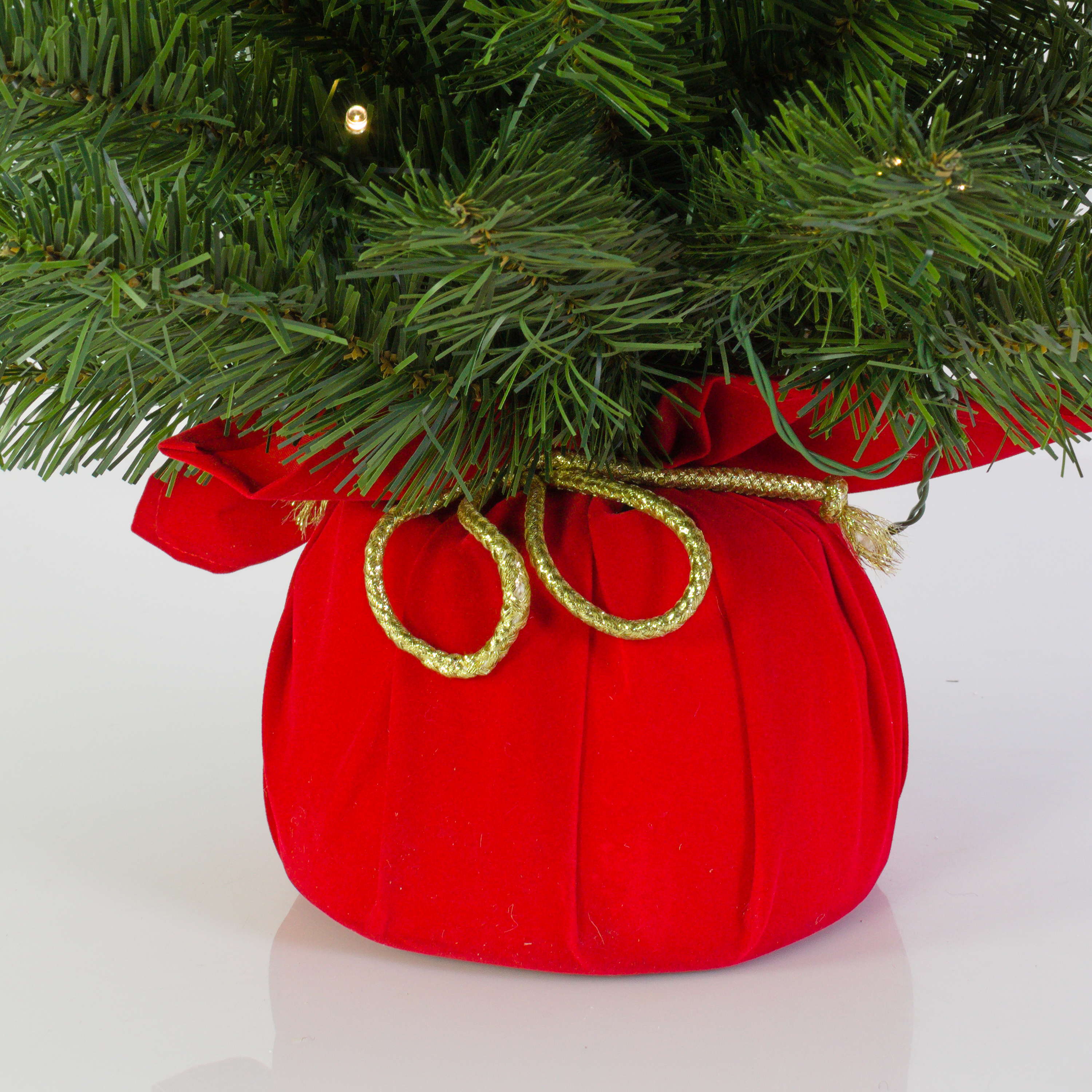 Künstlicher Tannenbaum WARSCHAU, Jutesack rot, LEDs, 90cm, Ø50cm