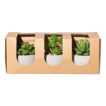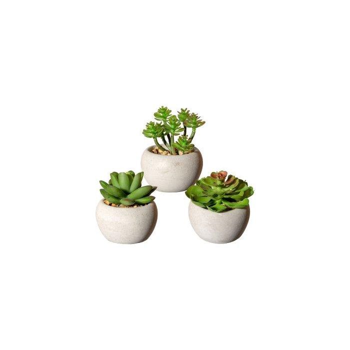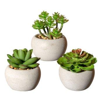 Künstliches Gesteck Sukkulenten PLOKSA im Zementtopf, 3 Stück, grün, 6,5-8cm