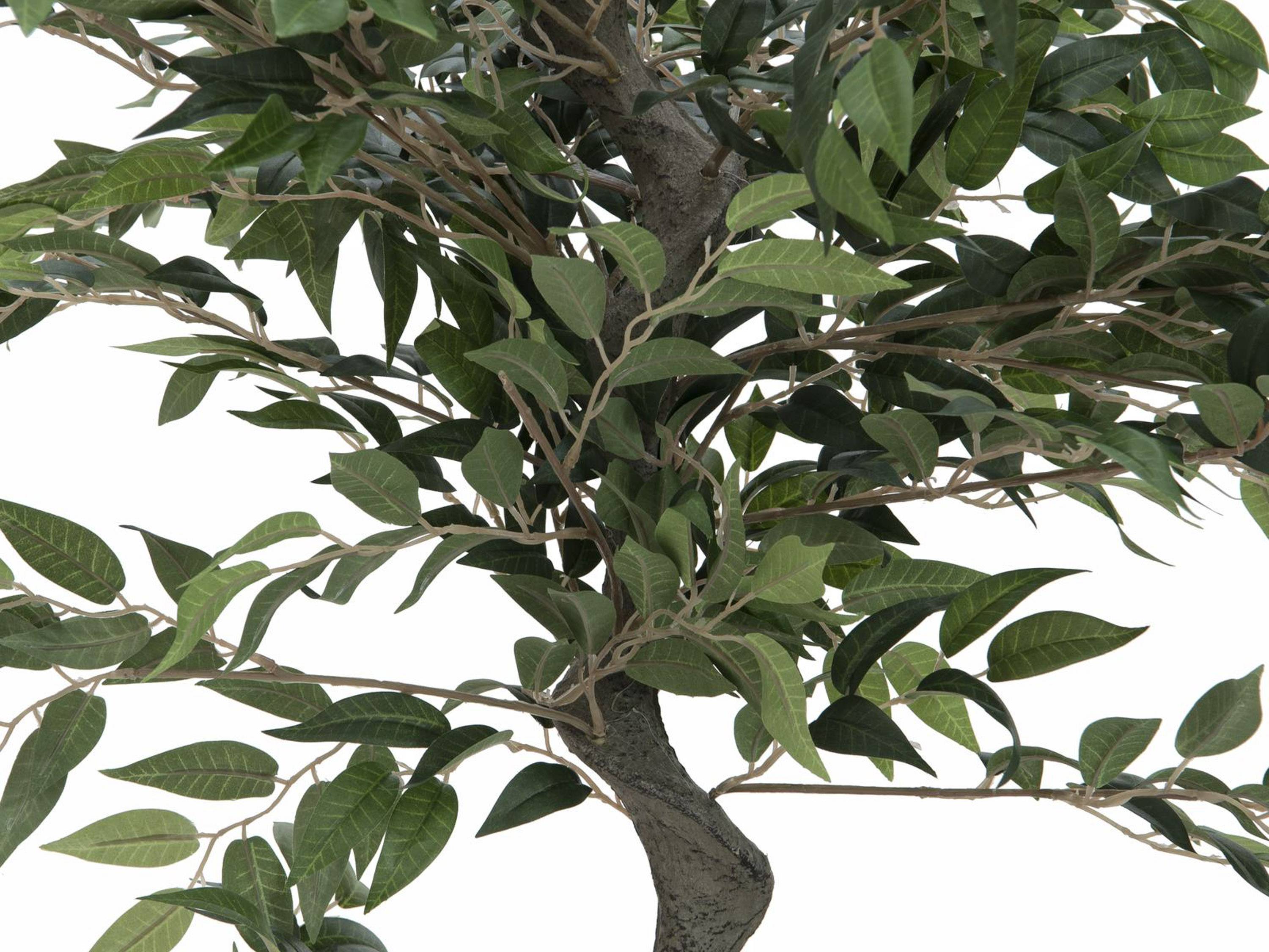 - Viele originalgetreue Textilblätter in hell- und dunkelgrün auf dunkelbraunen Kunststamm mit naturnaher Maserung